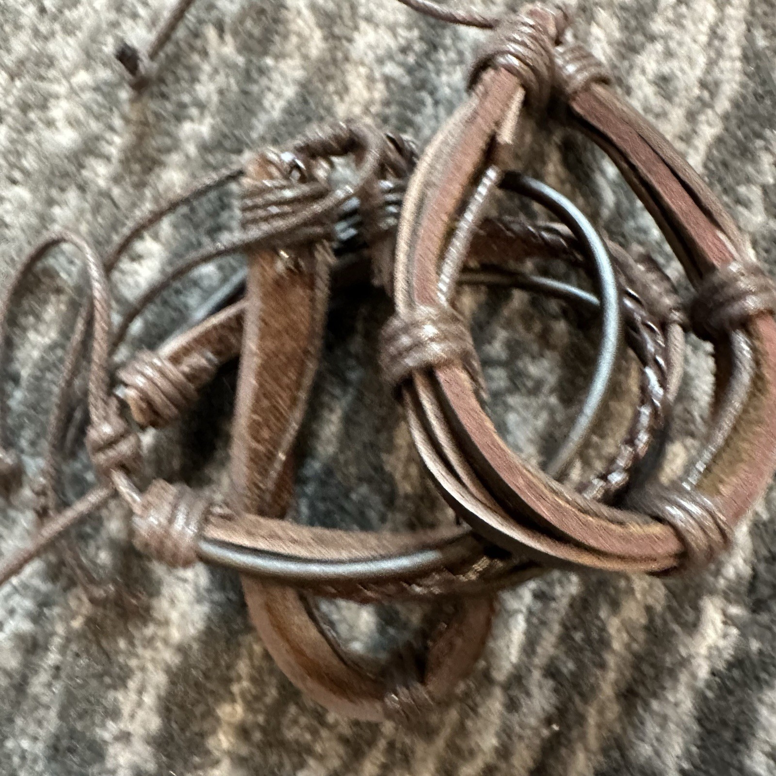 Handmade 3 Bracelets Wrap Brown Faux Leather Cuff Bangle Adjustable Wristband