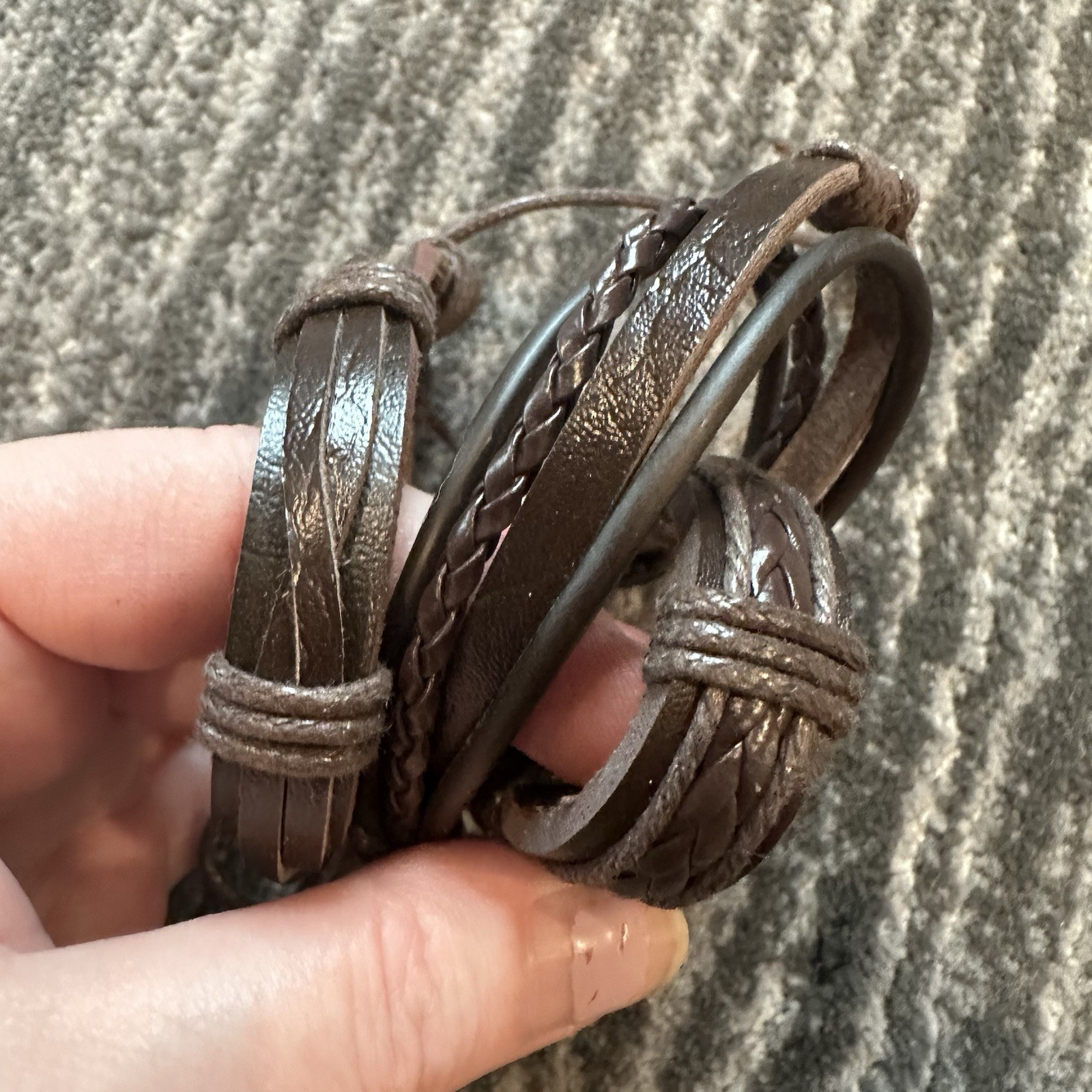 как выглядит Handmade 3 Bracelets Wrap Brown Faux Leather Cuff Bangle Adjustable Wristband фото