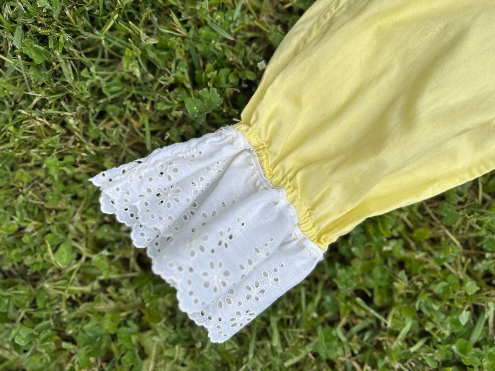 как выглядит Vintage 1970s Yellow Pantaloons With White Eyelet Trim / Costume Pantaloons фото