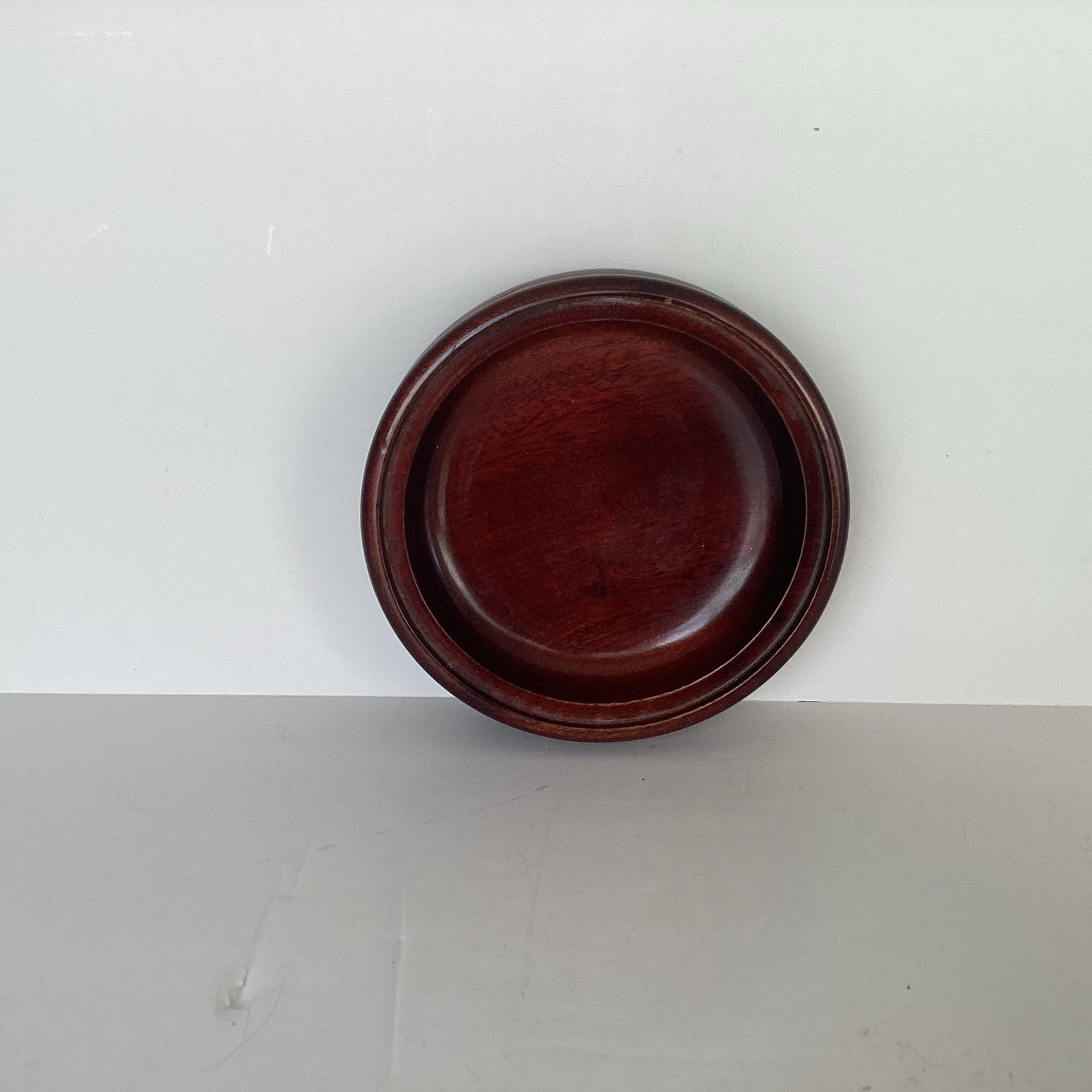 Vintage 1980s Vanity Trinket Box Round Wood Frosted Glass Lid Crowning Touch