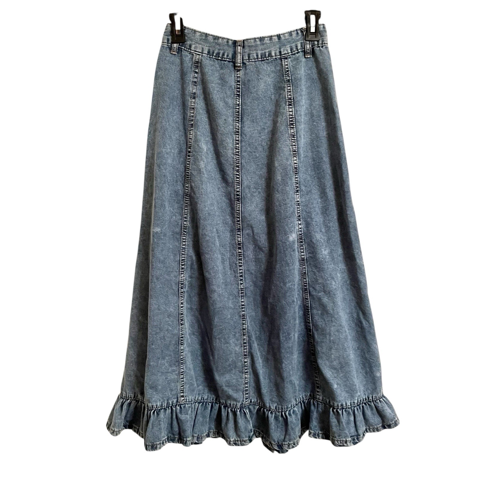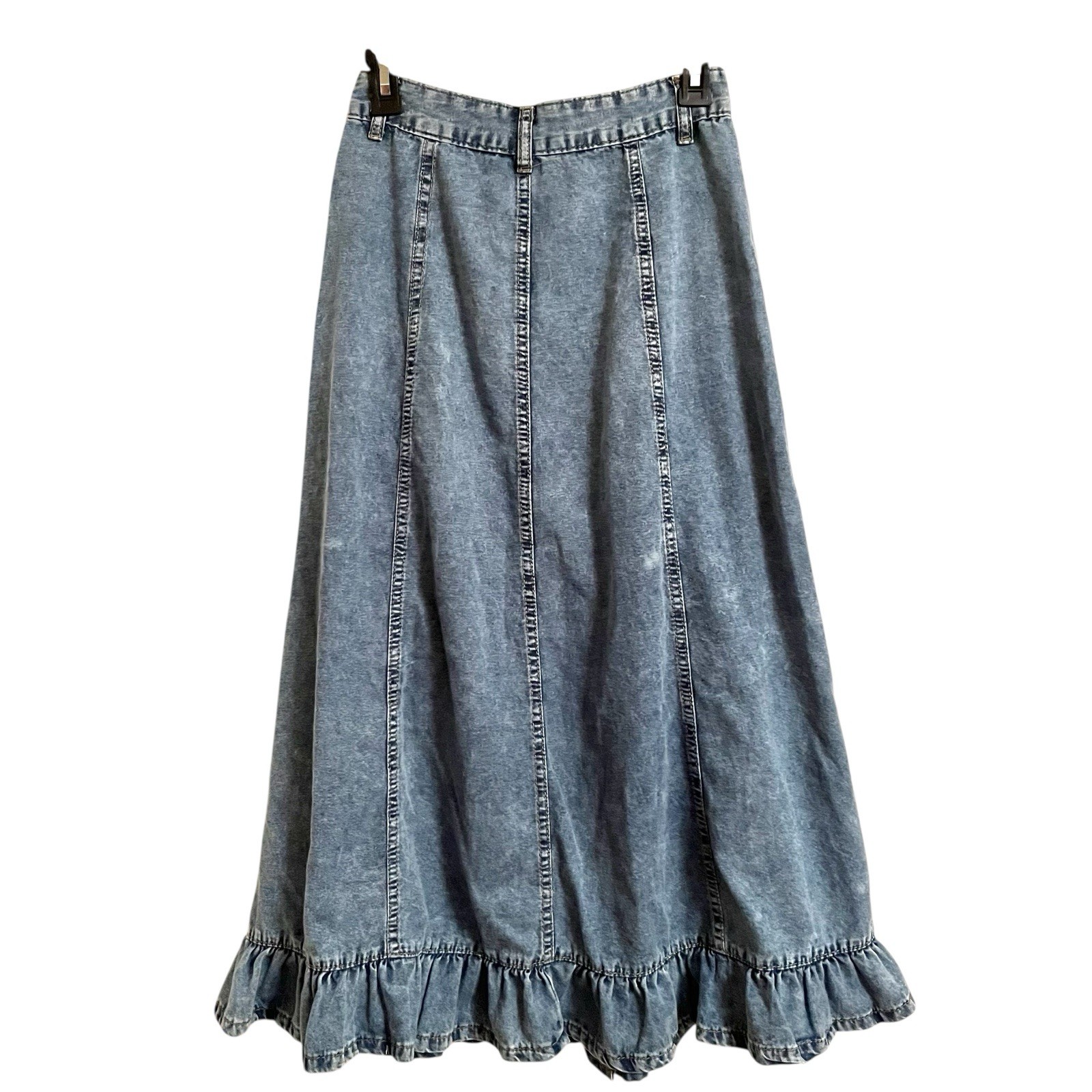 как выглядит 70s Boho vintage Blue Denim ruffle Western Cowgirl Prairie Skirt W 26" Sz SM фото