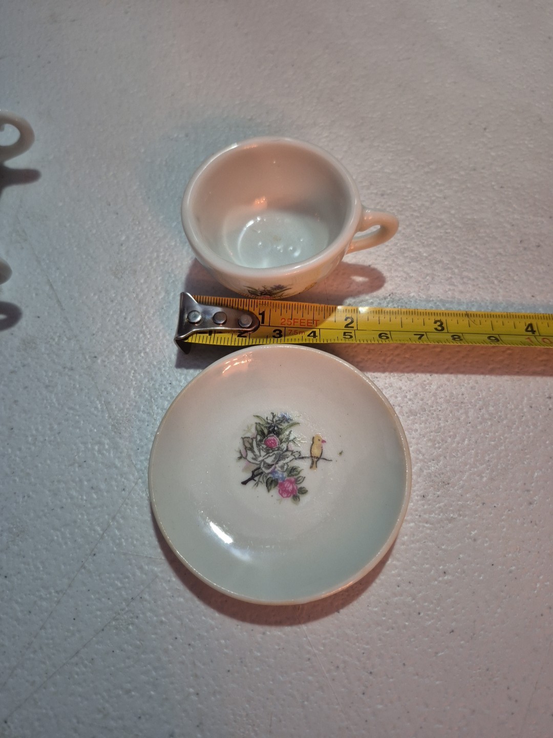 как выглядит VTG Miniature Porcelain Tea Set-Flowers/Bird-10 Pc Set-No Teapot- Chips-Japan фото