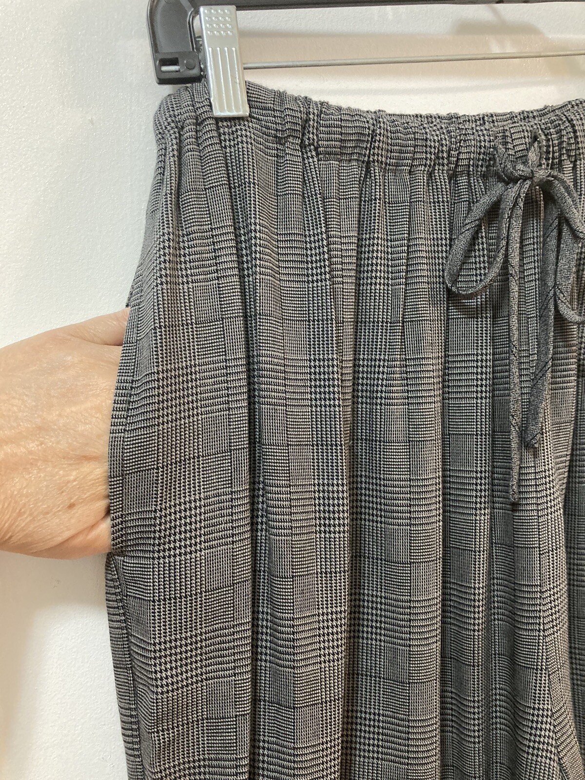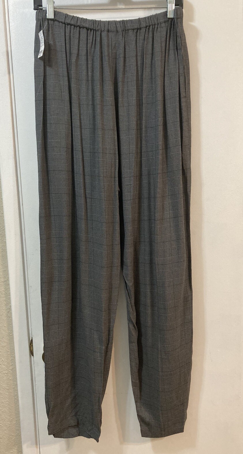 CELIA by FAITH FORRESTER Pants Gray Plaid Elastic Drawstring Waist Pockets L NEW