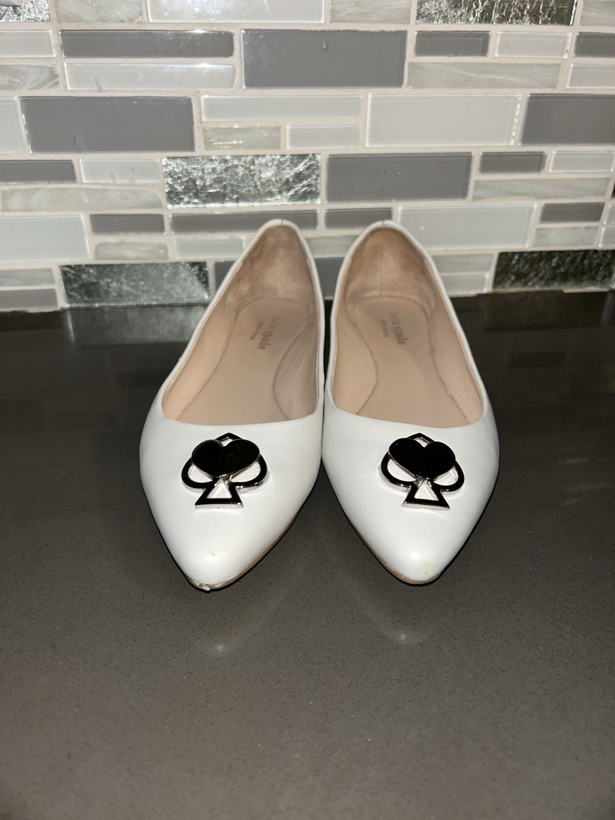 как выглядит KATE SPADE New York LENORA Point Toe Flat Shoe Optic White Size 5 фото