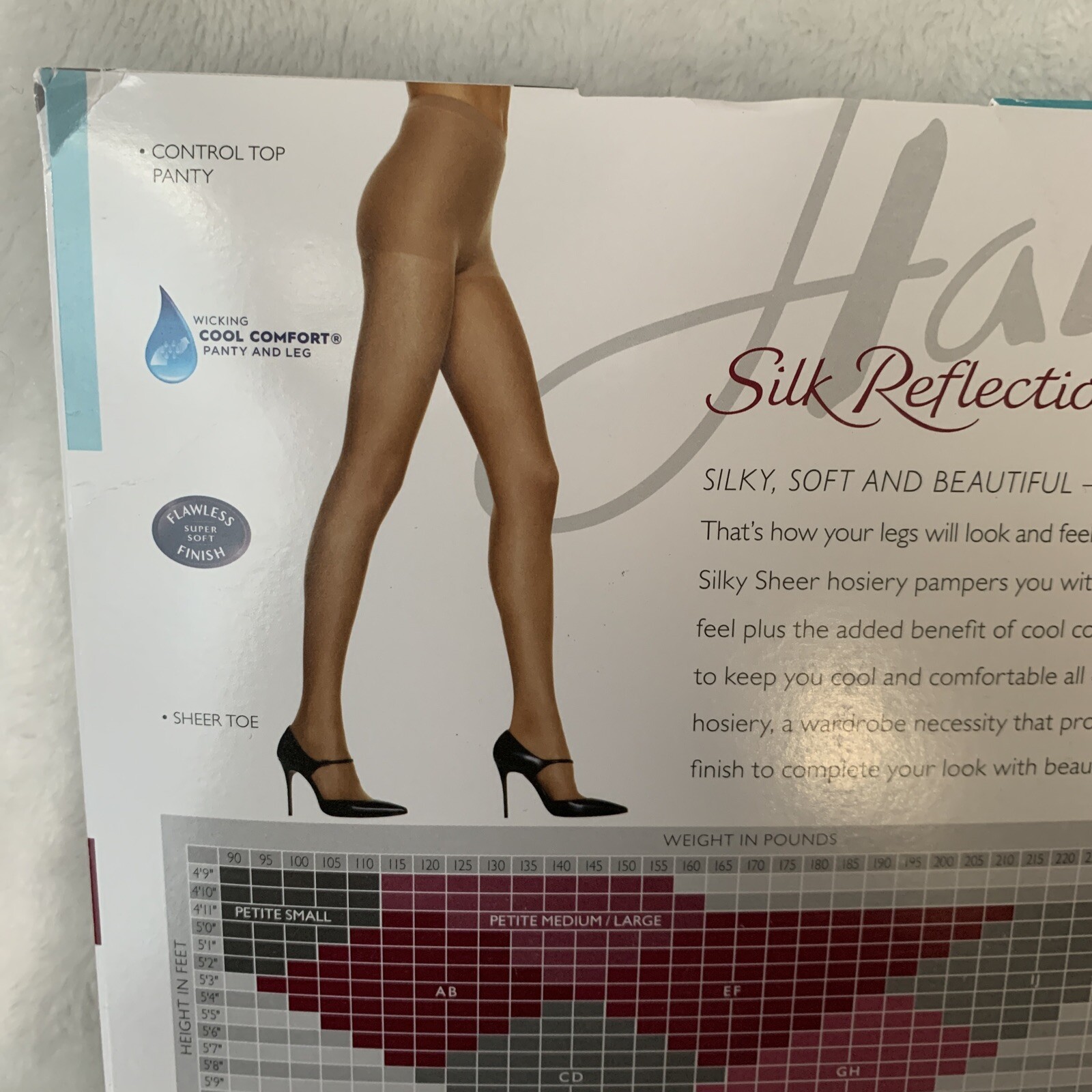 Hanes Pantyhose Silk Reflections Control Top Sheer Toe Pearl Style 717 Size EF