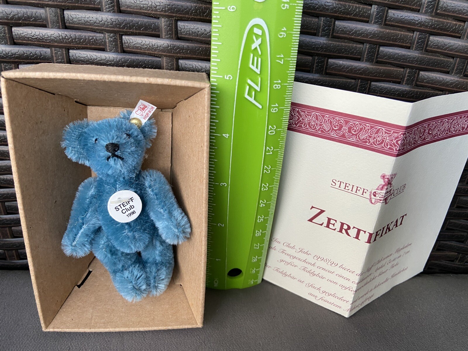 STEIFF CLUB GIFT 1998/99 TEDDY BEAR BLUE MOHAIR 4 Fully JOINTED W/ BOX/TAGS/COA