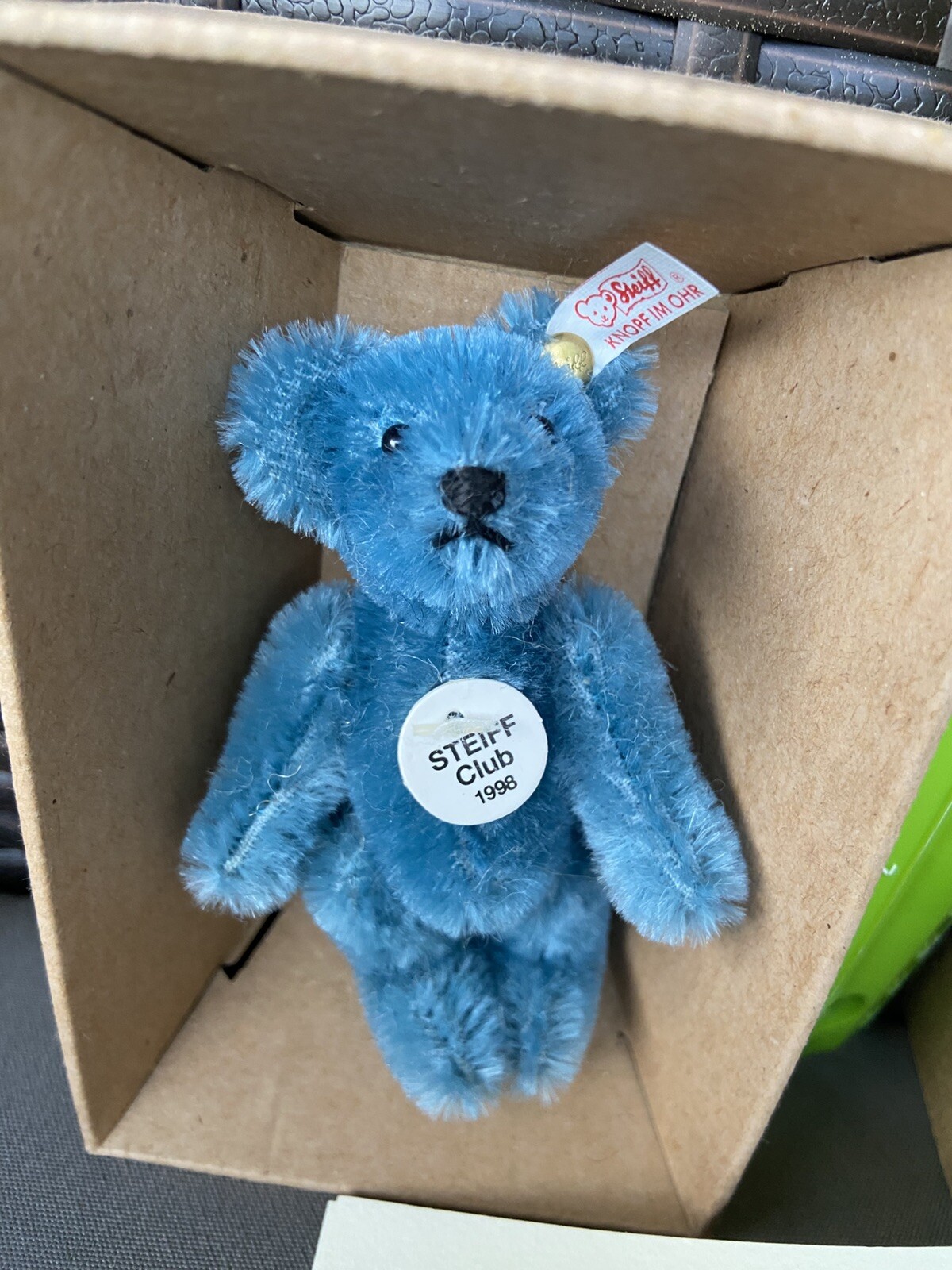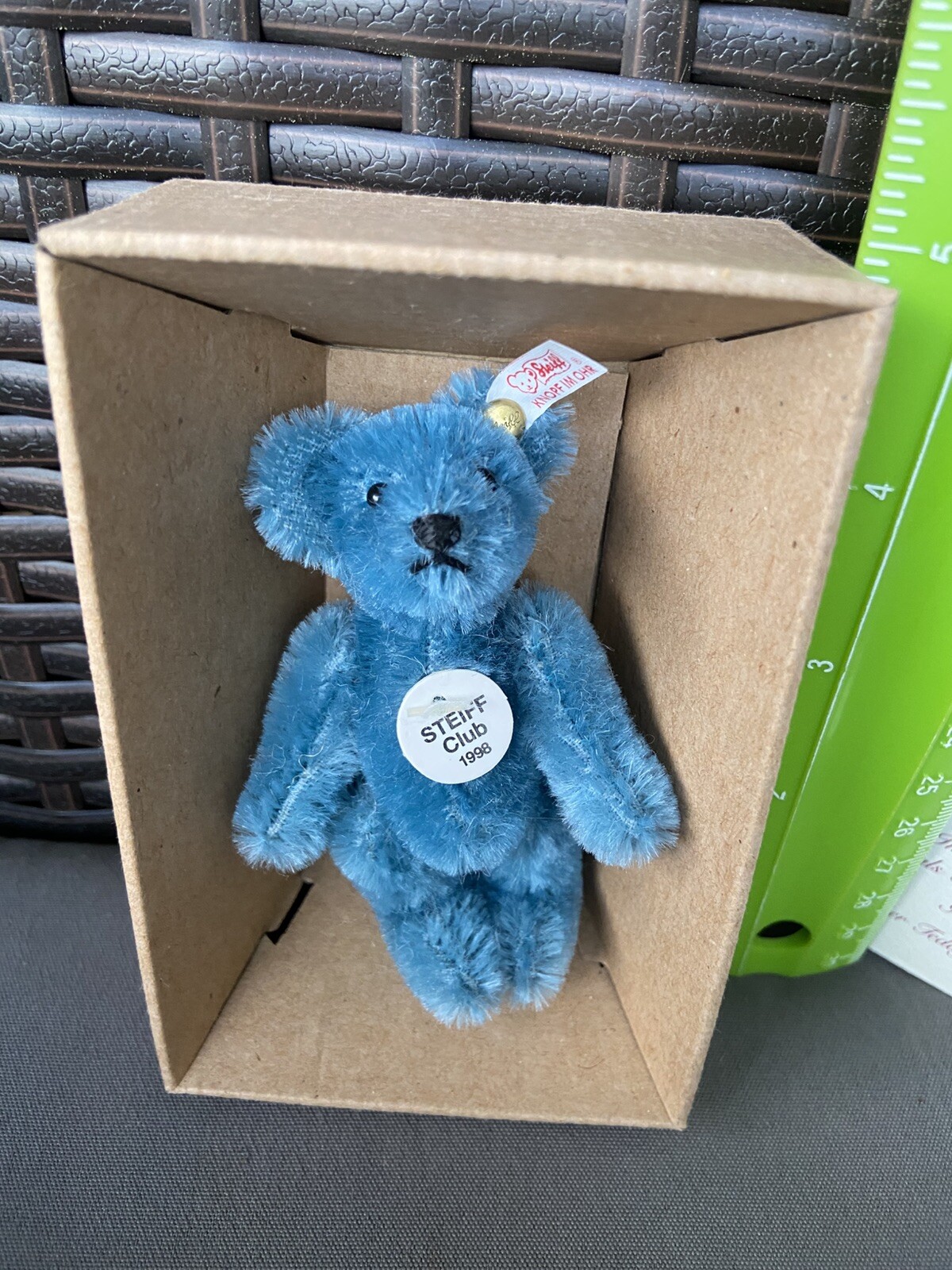 как выглядит STEIFF CLUB GIFT 1998/99 TEDDY BEAR BLUE MOHAIR 4 Fully JOINTED W/ BOX/TAGS/COA фото