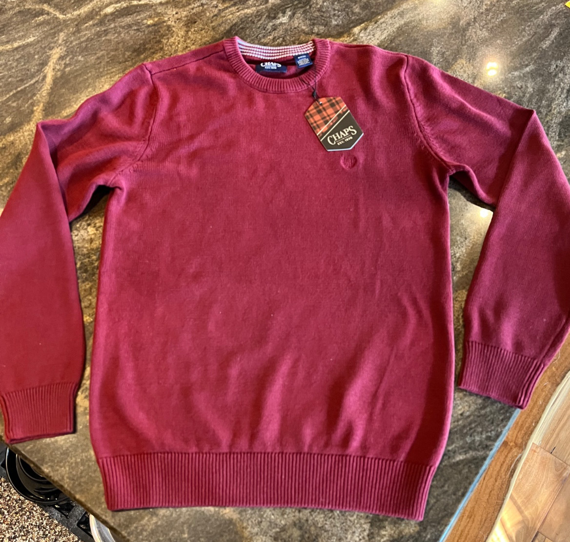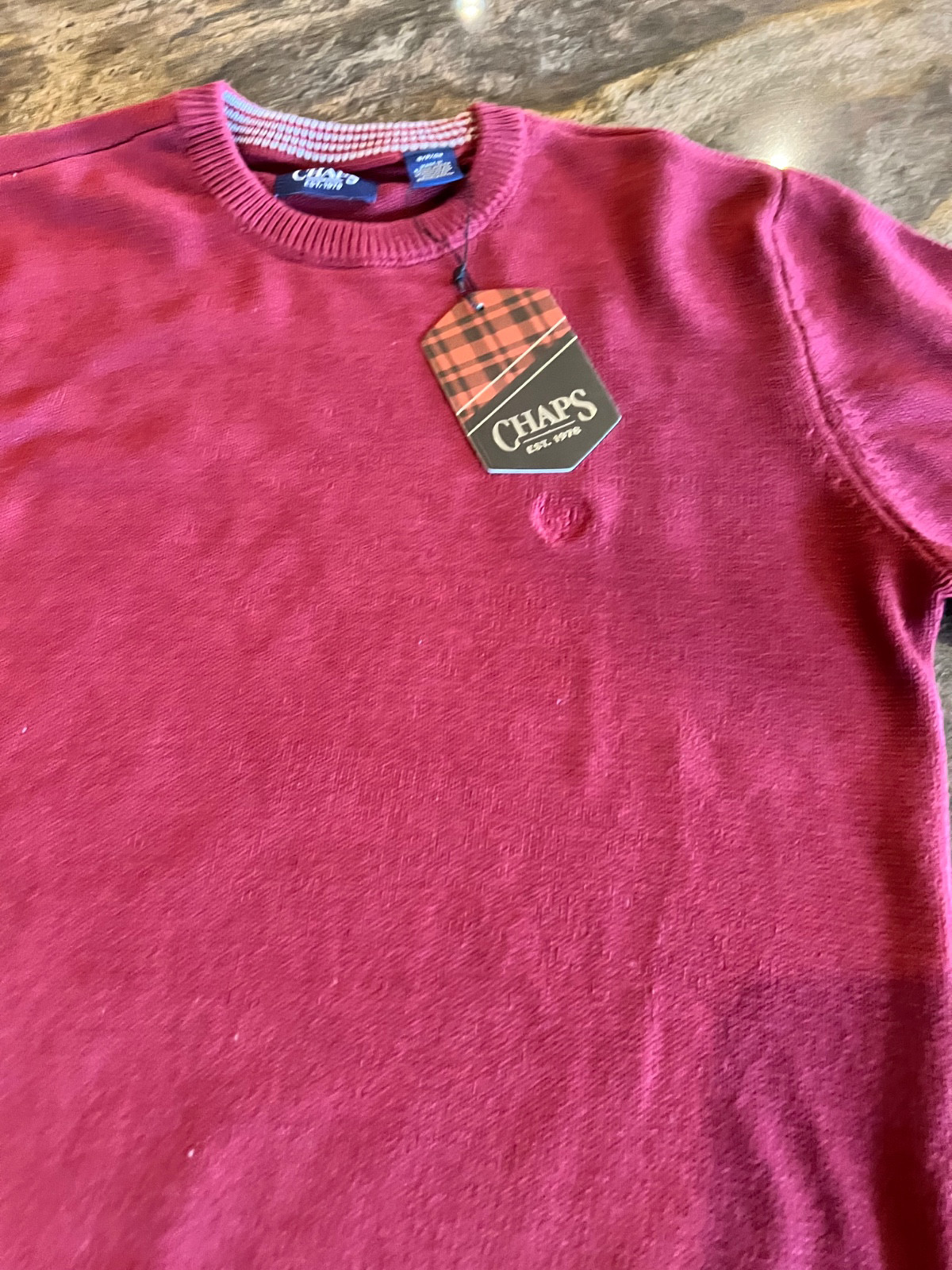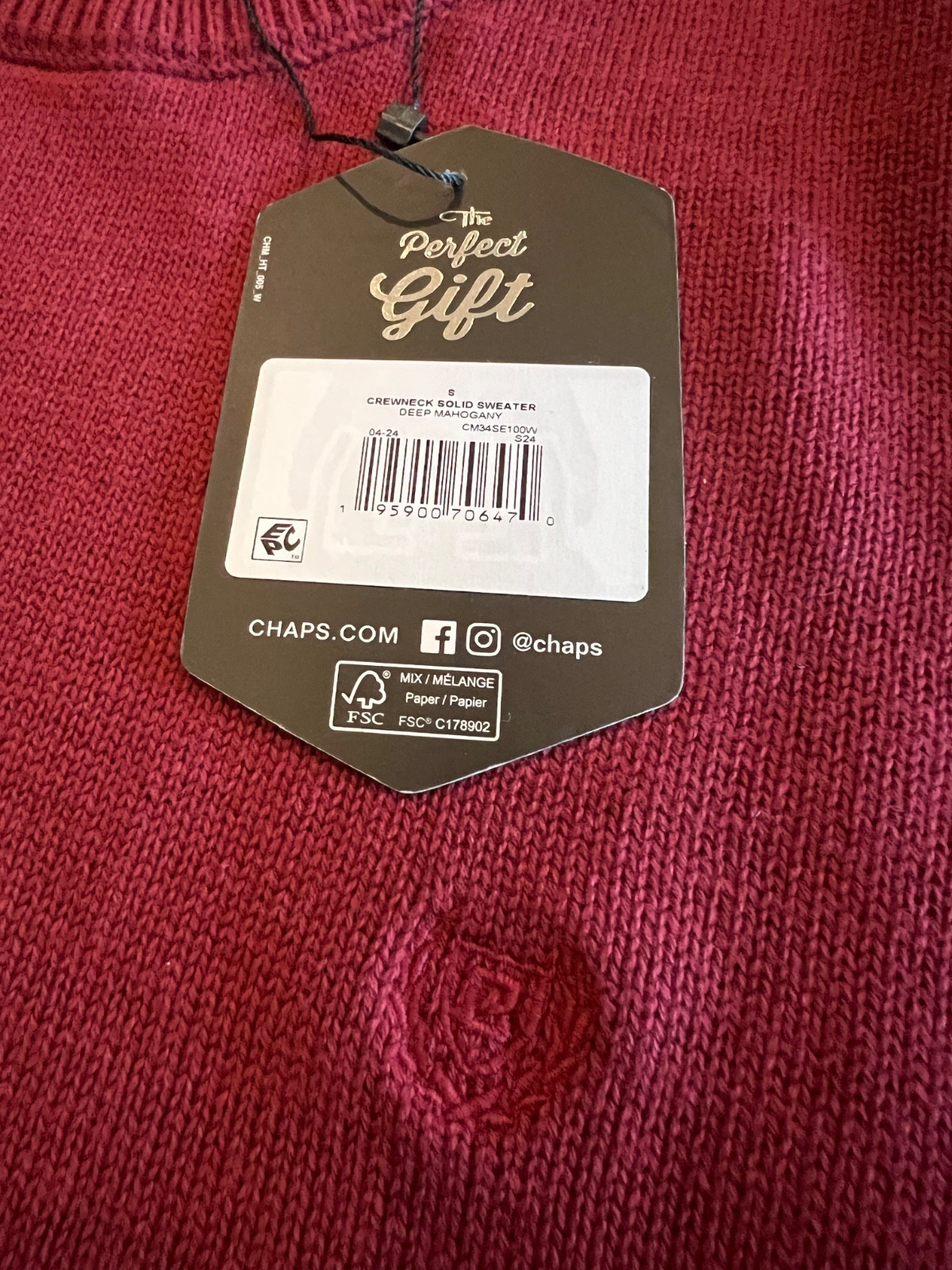 CHAPS Men's Solid 100 Cotton Crewneck Sweater SZ SL Deep Mahogany NWT's NEW