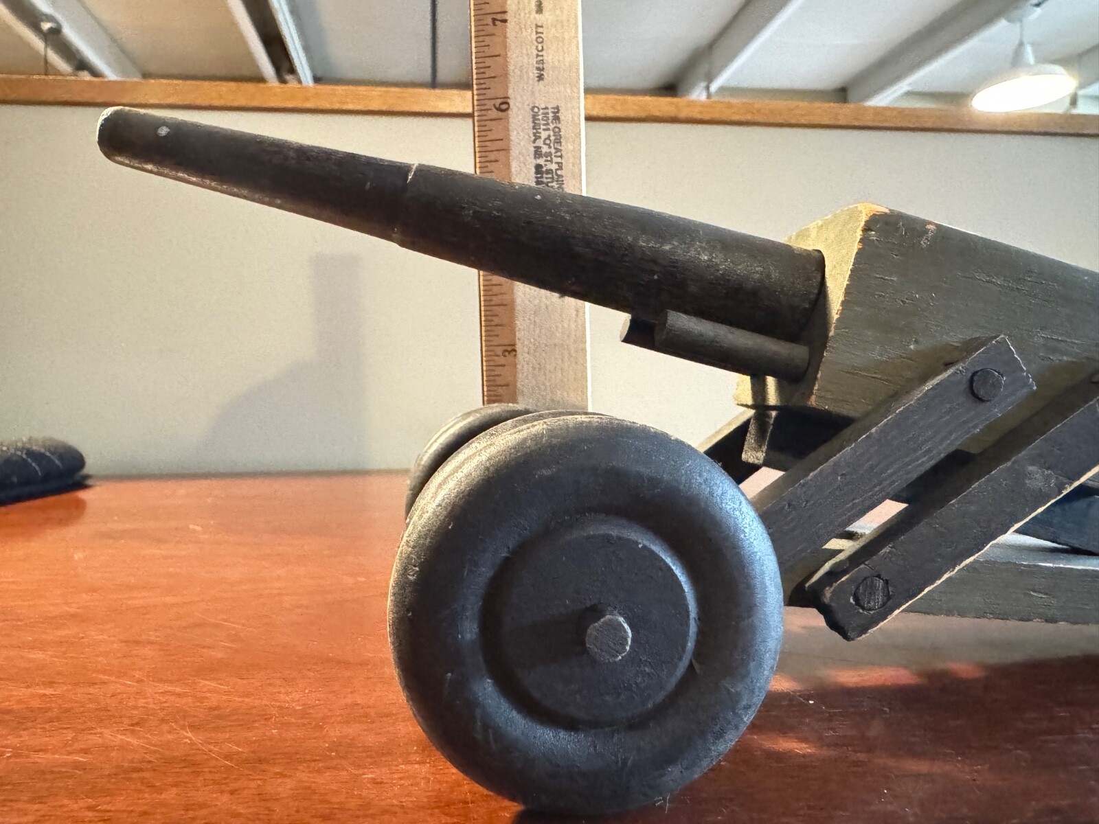 как выглядит Vintage Wooden Dimestore 75MM Artillery Army Cannon w/ Wheels USA фото