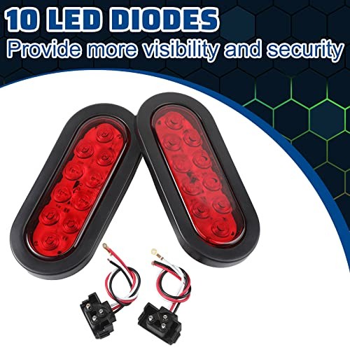12 Pack Oval LED Trailer Light Kit - 10 LED Stop Reverse, Turn, Tail Red