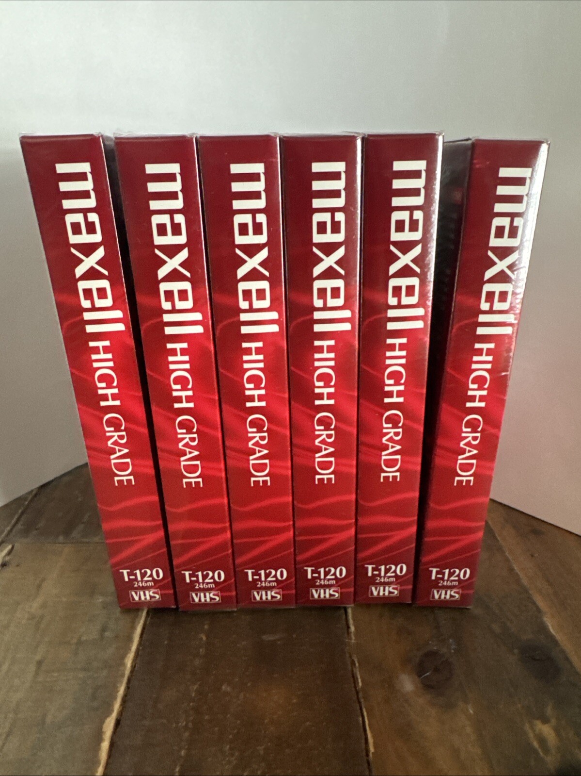 LOT OF 6 Maxwell High Grade Video Cassette T-120 6 Hour VHS - NEW/SEALED