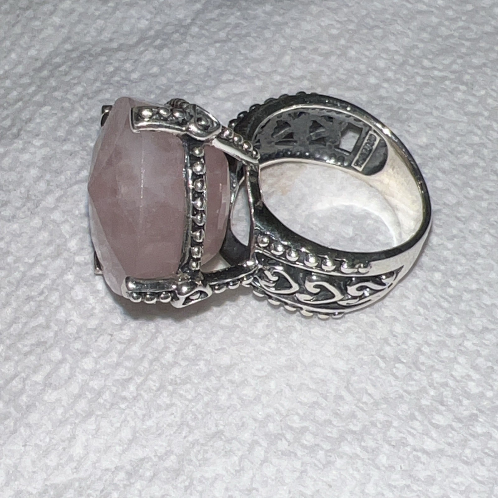 как выглядит Vintage Sterling Silver 925 Pink Quartz Faceted Ring size 7 фото