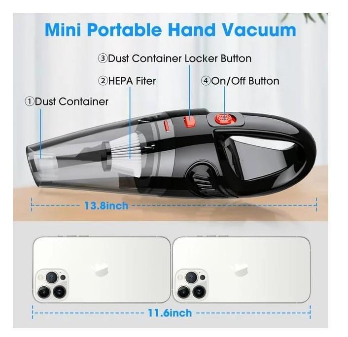 Handheld Vacuum Cordless, 6KPA Powerful Cyclonic Suction Vacuum Cleaner, Car Vac