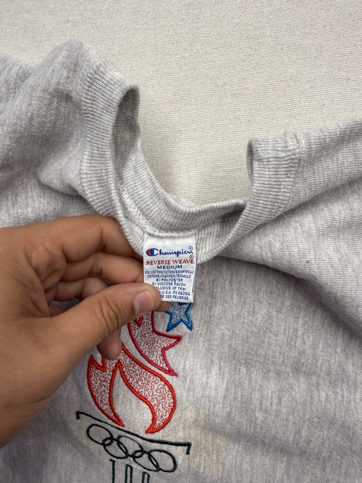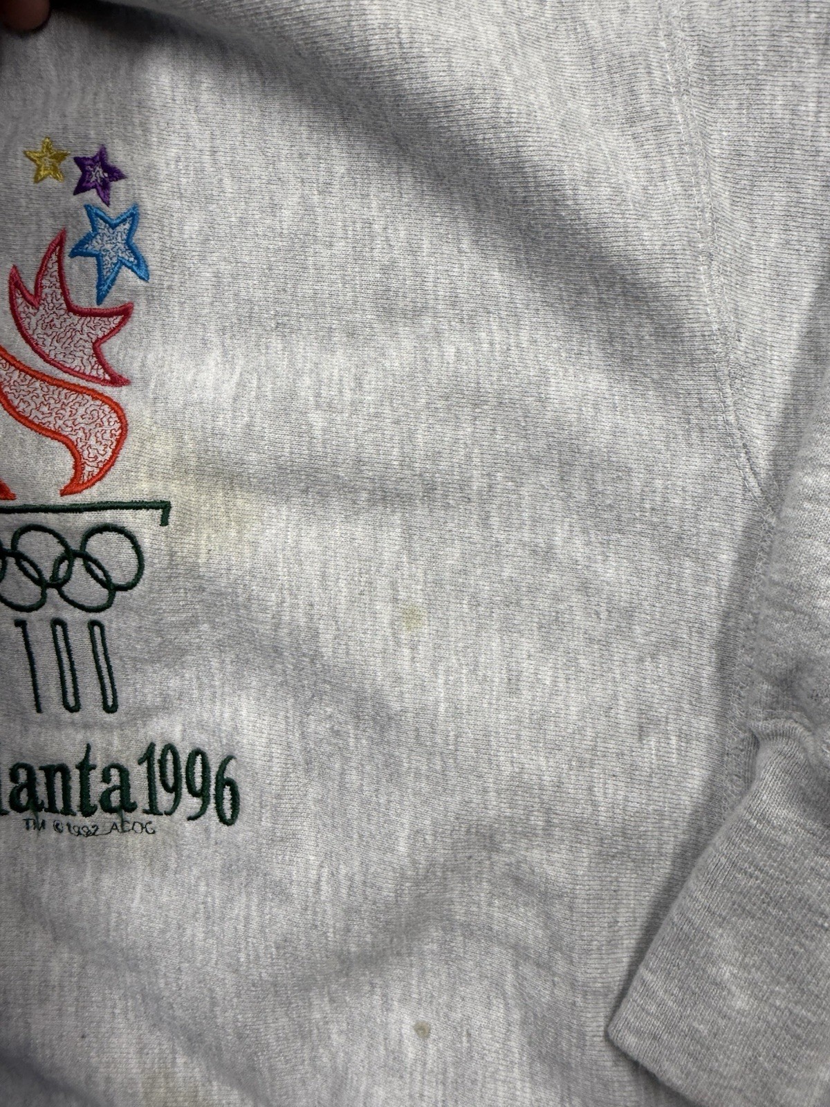 как выглядит Vintage Champion Reverse Weave 1996 Olympics Stained Medium фото