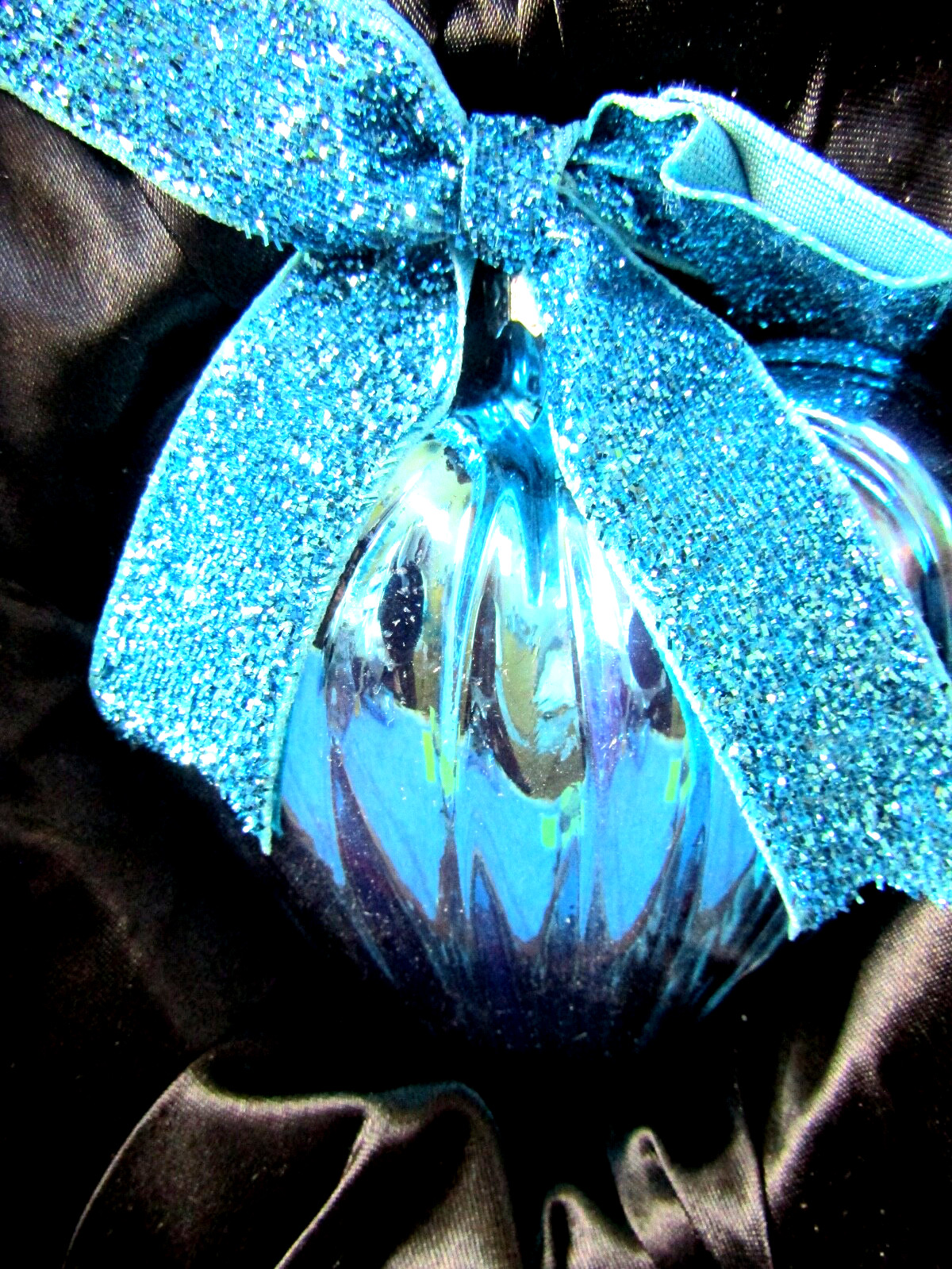• Set of Three Heart-Shaped Ornaments in Blue, Green Gold w/Ribbon Hangers - NIB