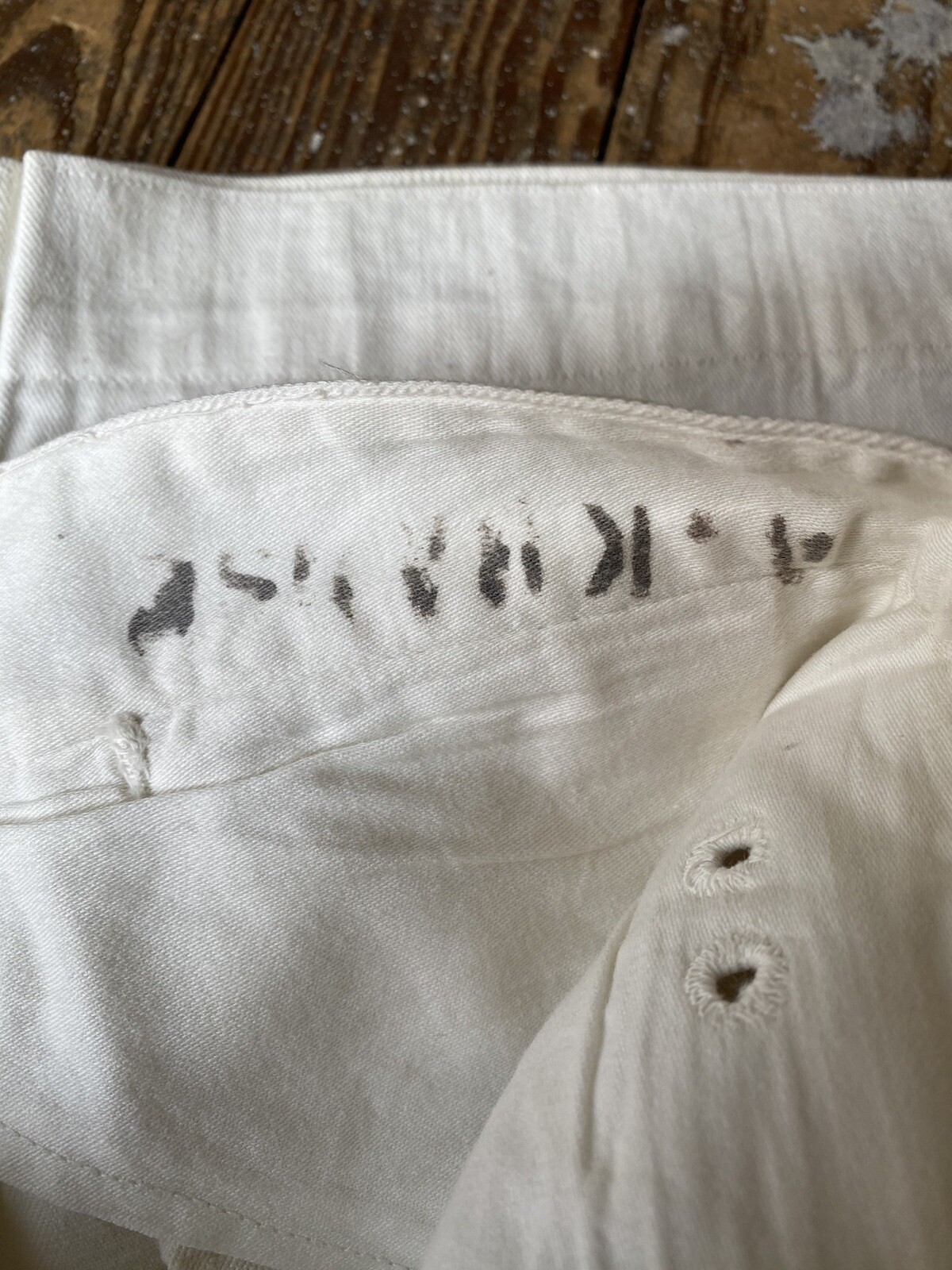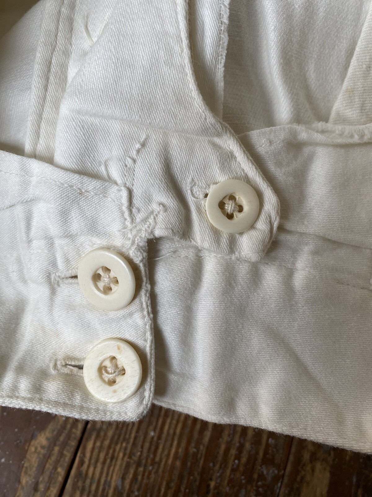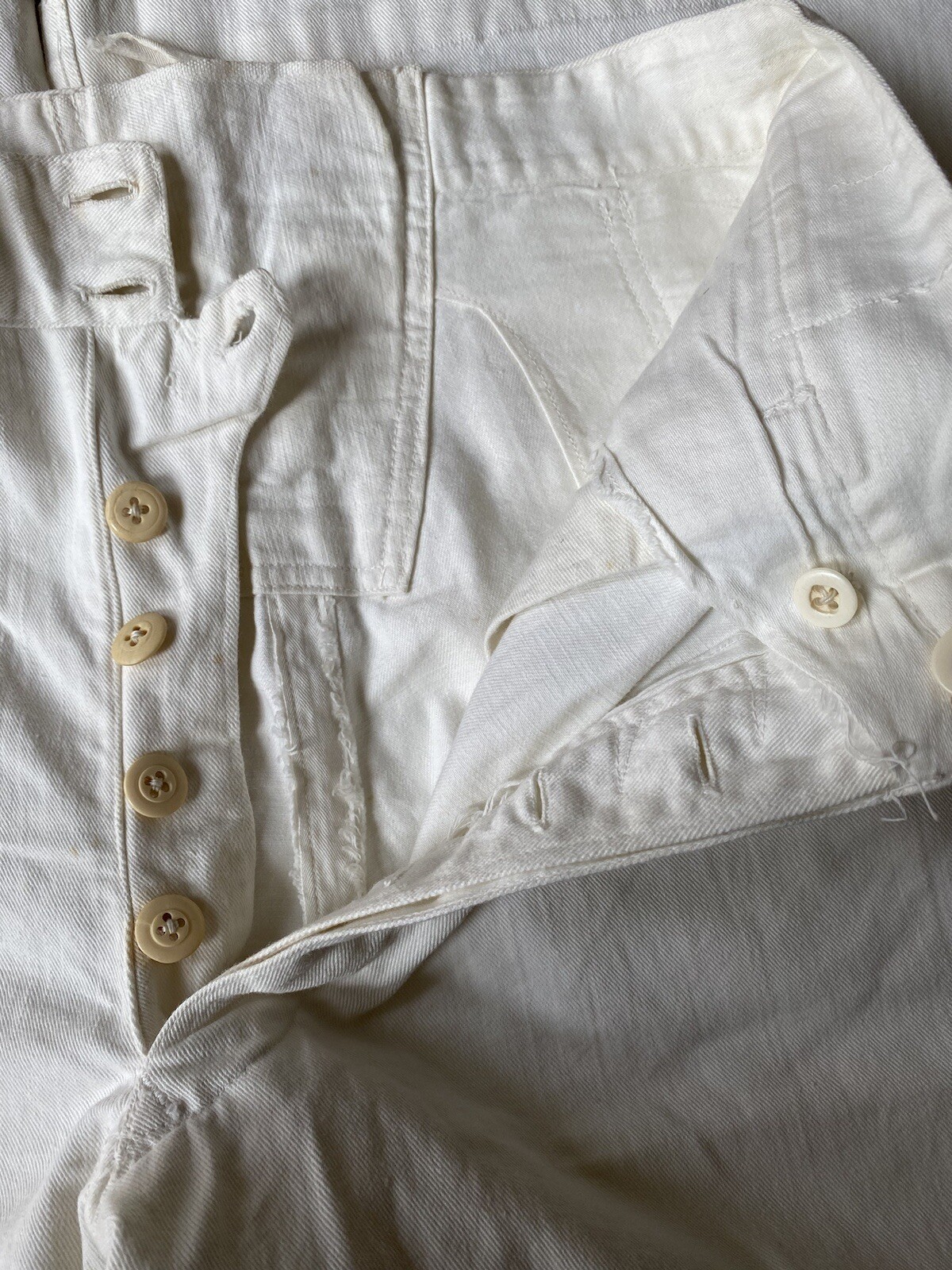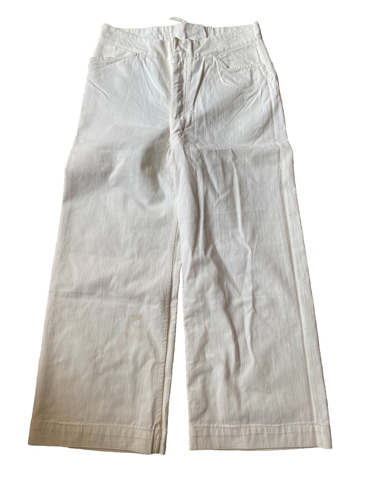 как выглядит Vtg 30s US Navy White Canvas Lace Back Bell Bottom Pants 30x25 bone buttons фото