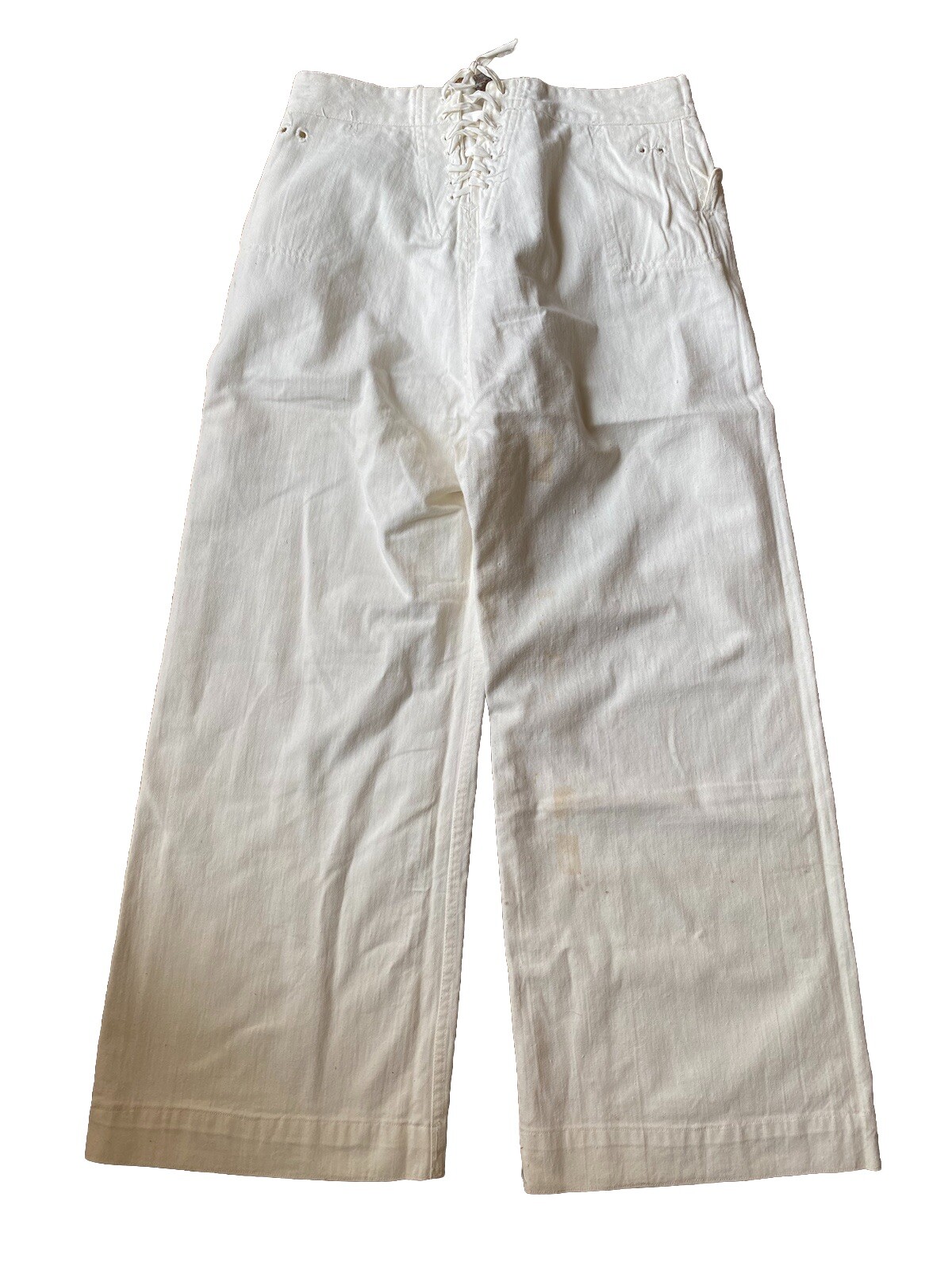 Vtg 30s US Navy White Canvas Lace Back Bell Bottom Pants 30x25 bone buttons