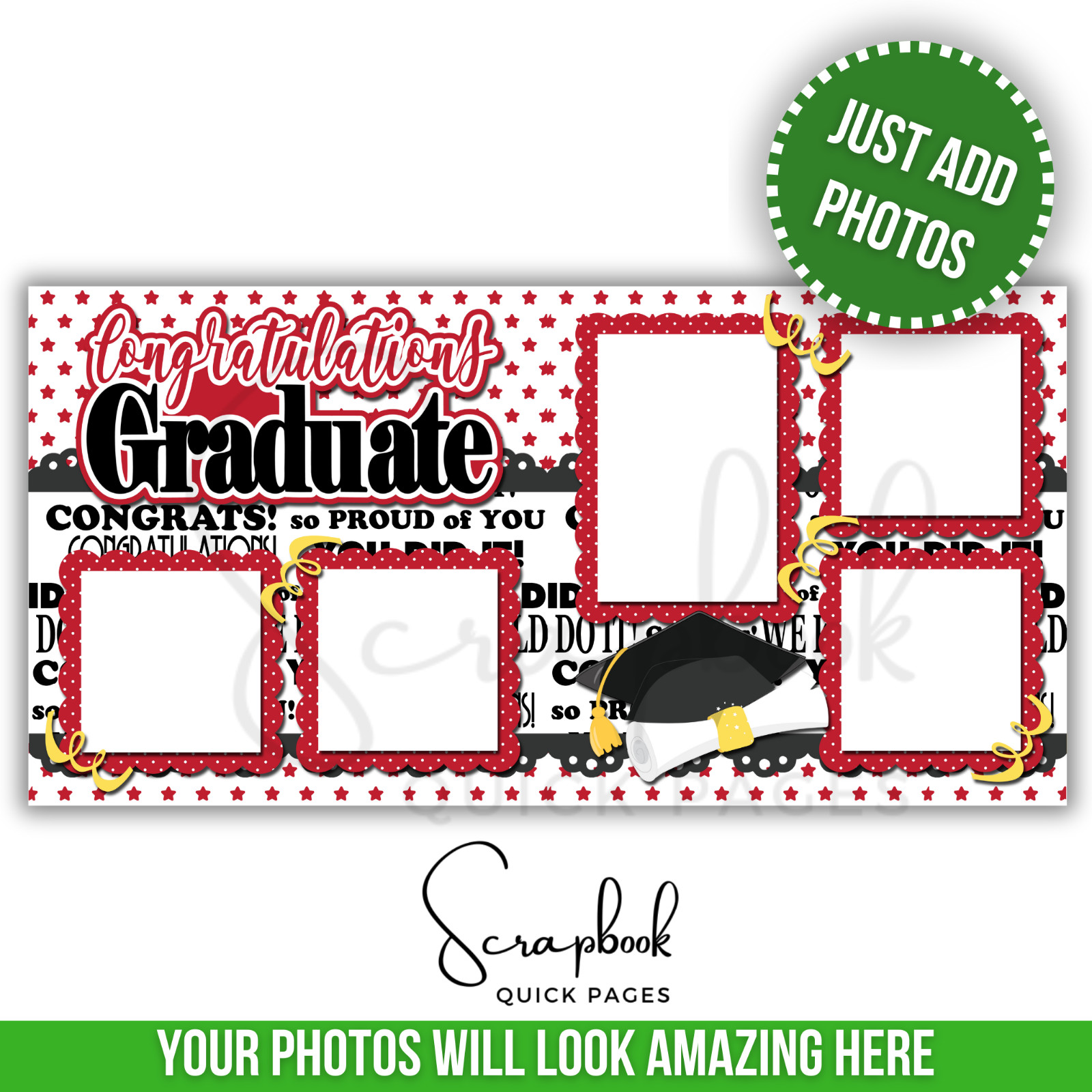 Red Graduation Scrapbook Pages PRINTED Premade Scrapbook Quick Pages 83