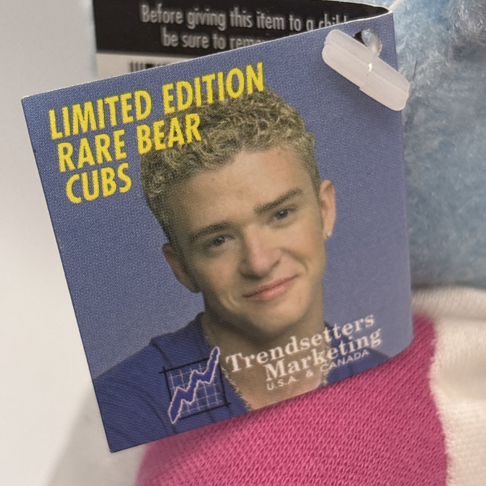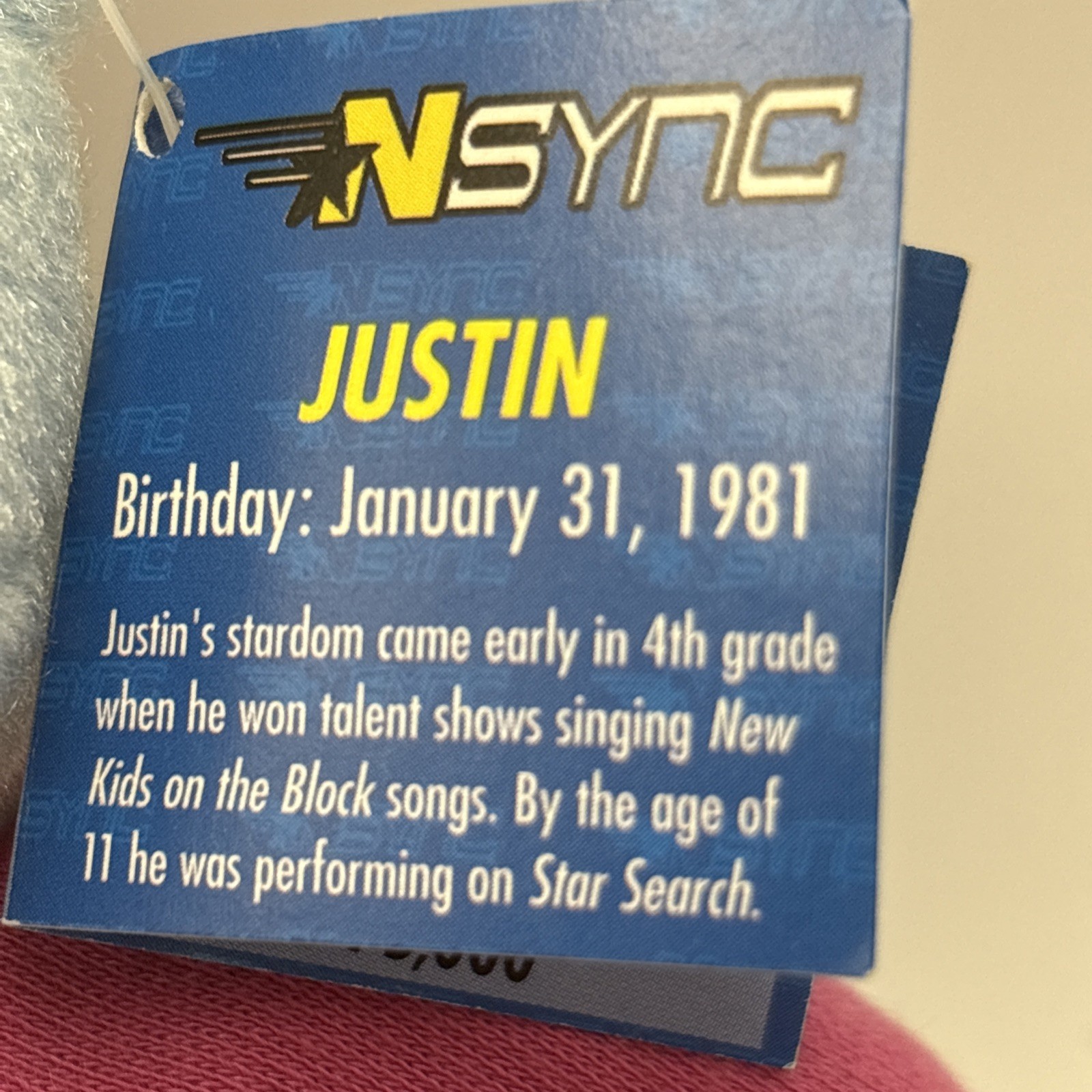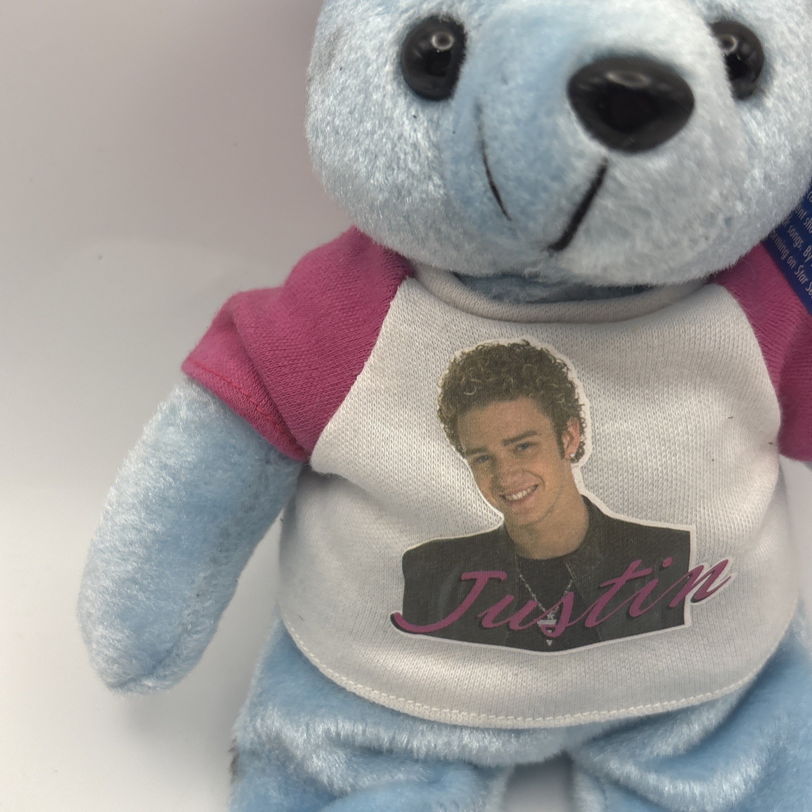 • Justin Timberlake Limited Edition 8" Bear NSYNC Cap Blue Photo Shirt Tags 2000