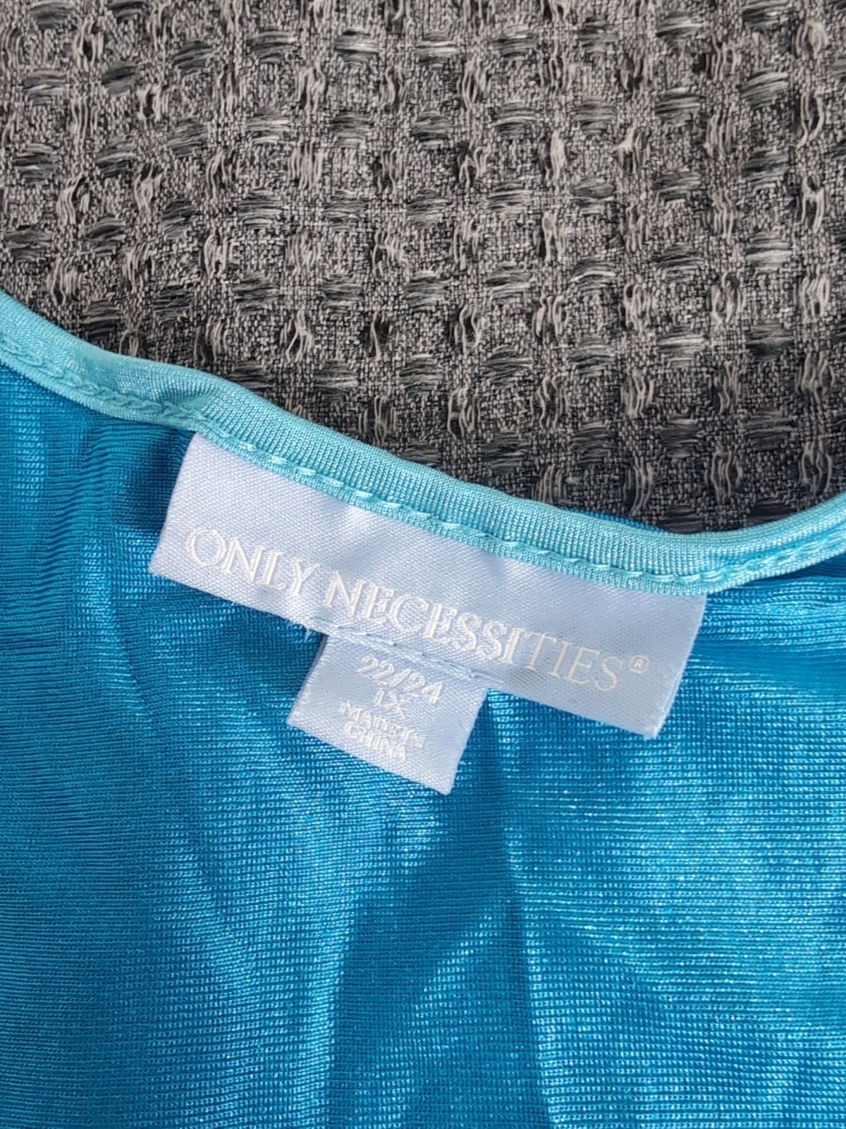 Vtg ONLY NECESSITIES Short sleeve Blue NYLON NIGHTGOWN, 1X 22-24 Trim Rosebud