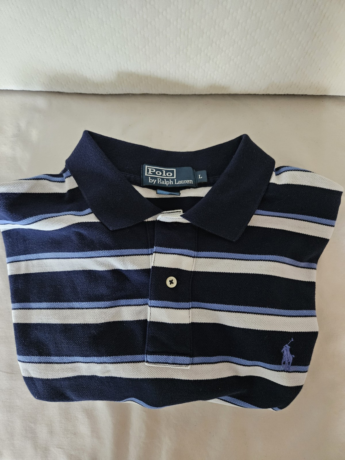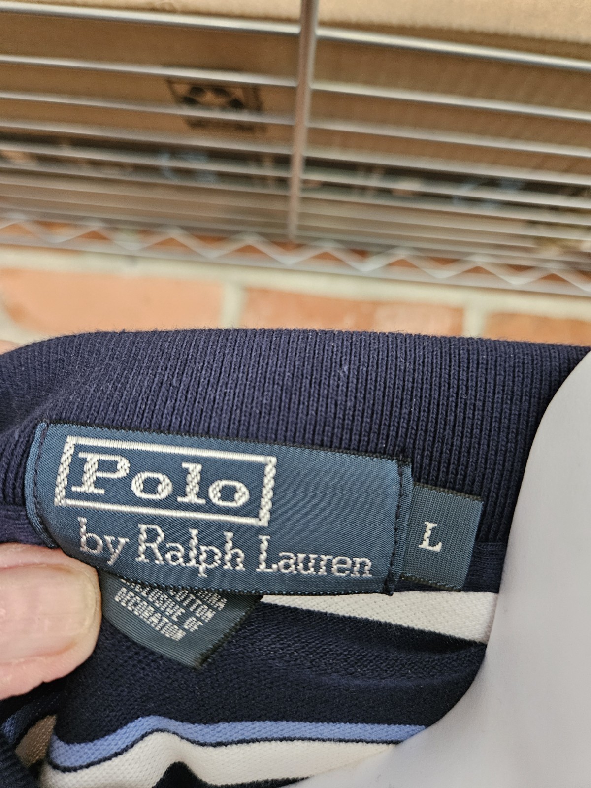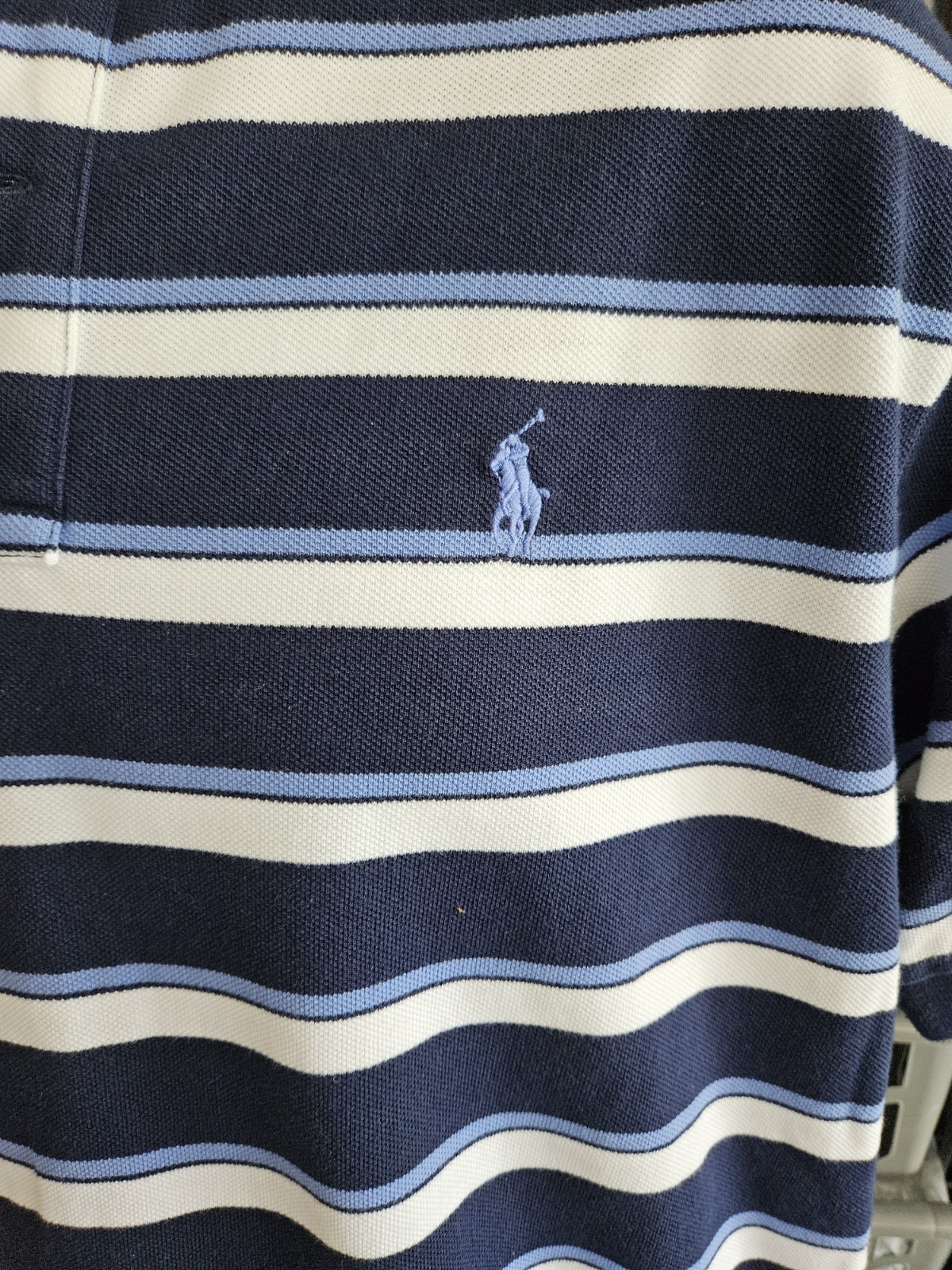 Polo by Ralph Lauren size L. Dark blue with blue and white stripes