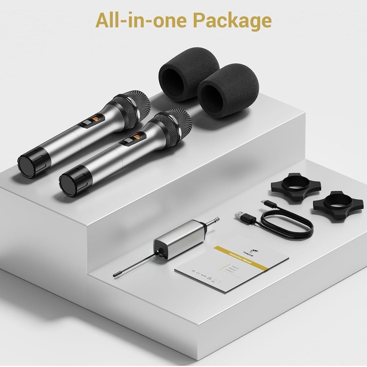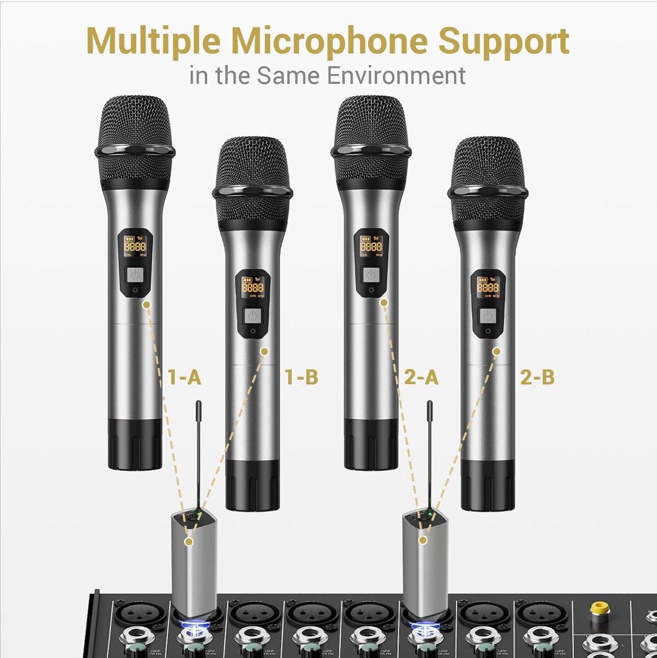 как выглядит Wireless Microphone, UHF Dual Cordless Metal Dynamic Mic System with Rechargeabl фото