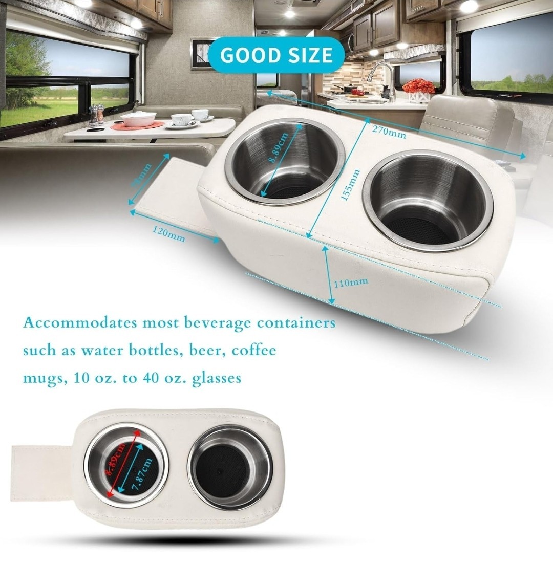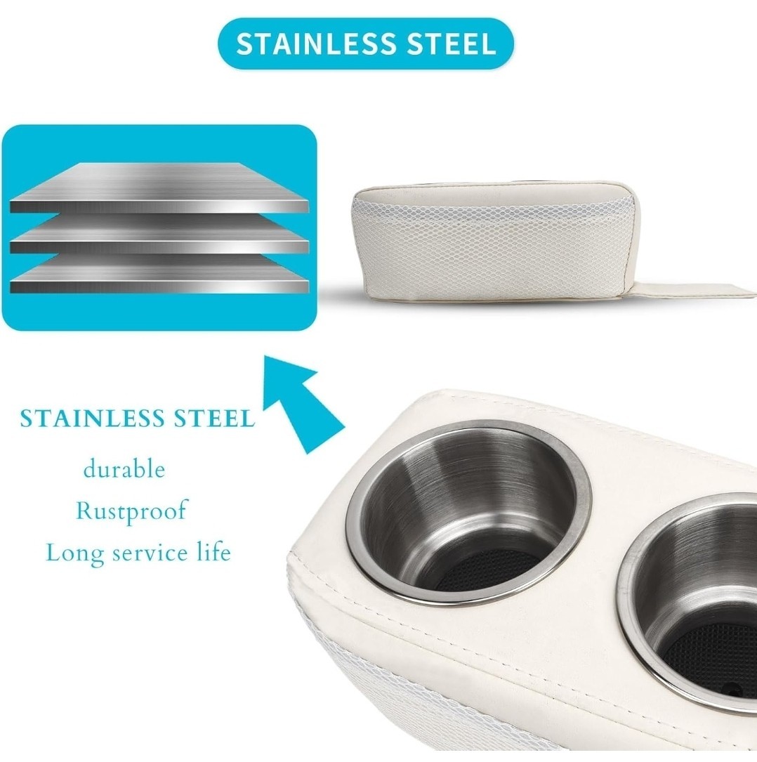 Double Stainless Steel Cup Holder, Strong and Durable, Portable Design. White