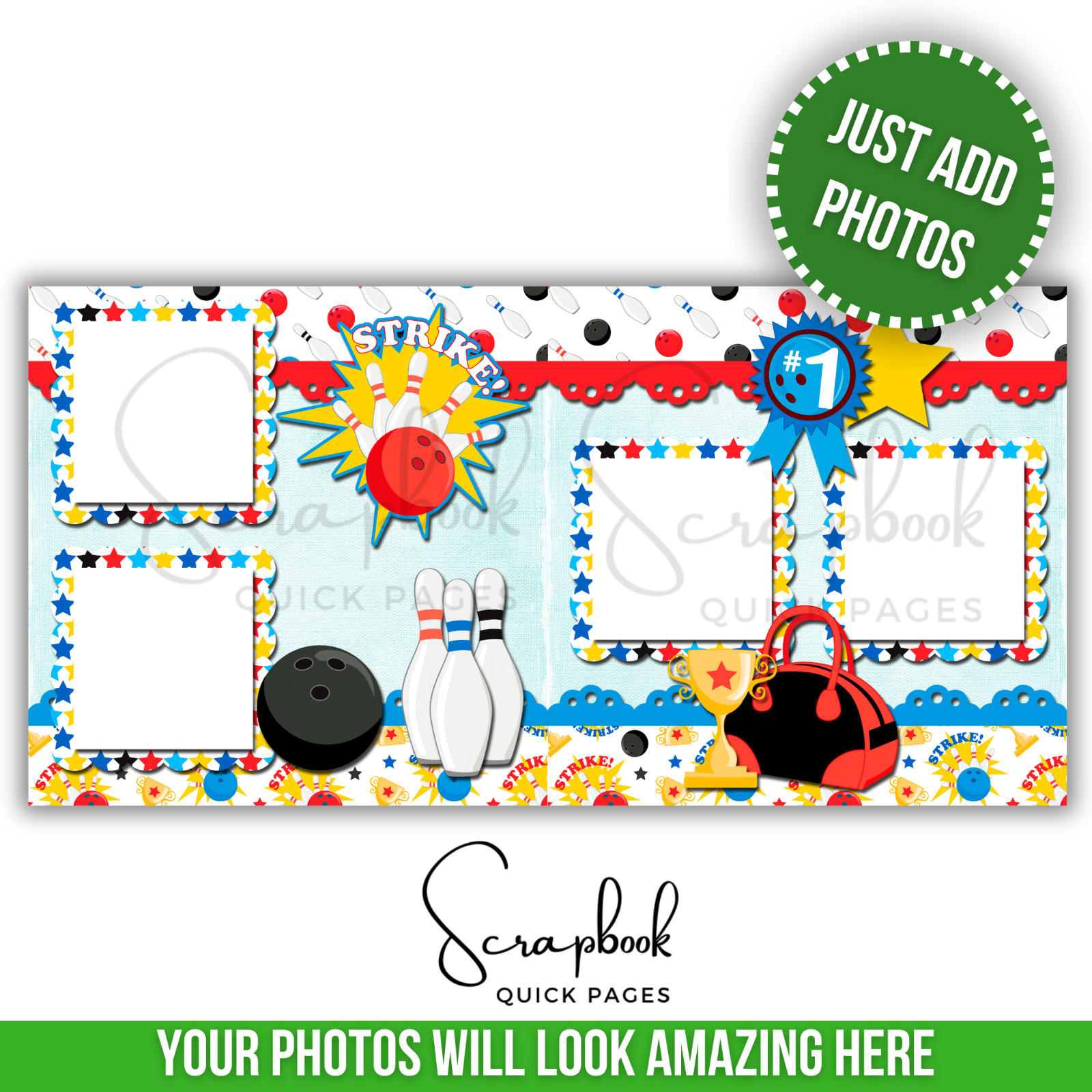 Bowling Scrapbook Pages PRINTED Premade Scrapbook Quick Pages 144