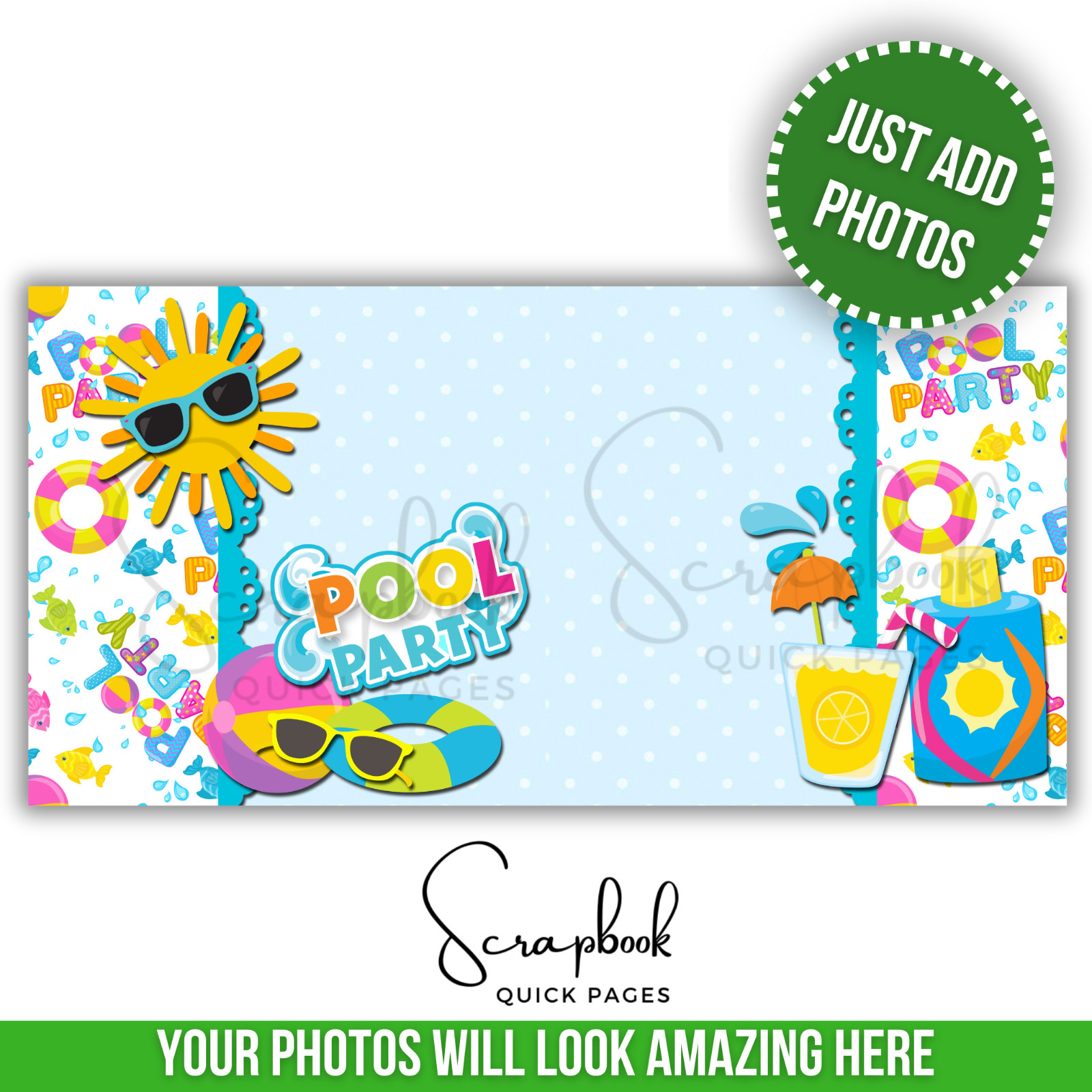 Pool Party Summer Scrapbook Pages PRINTED Premade Scrapbook Quick Pages 146