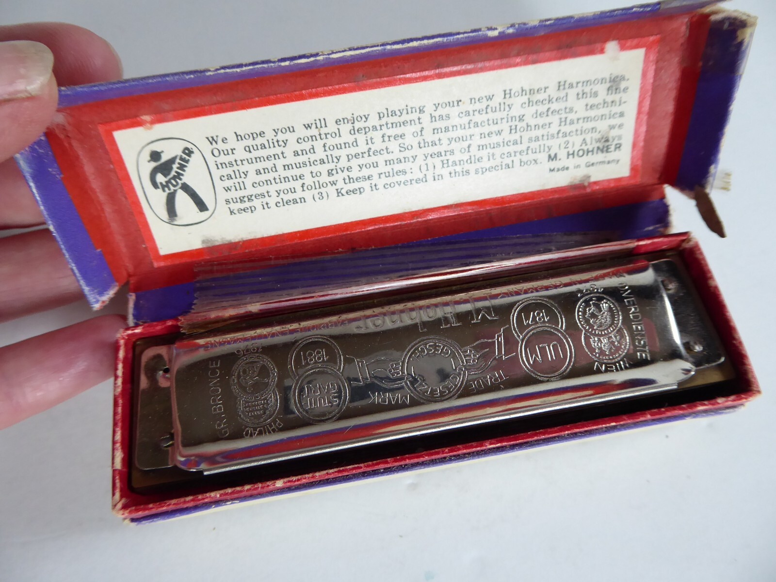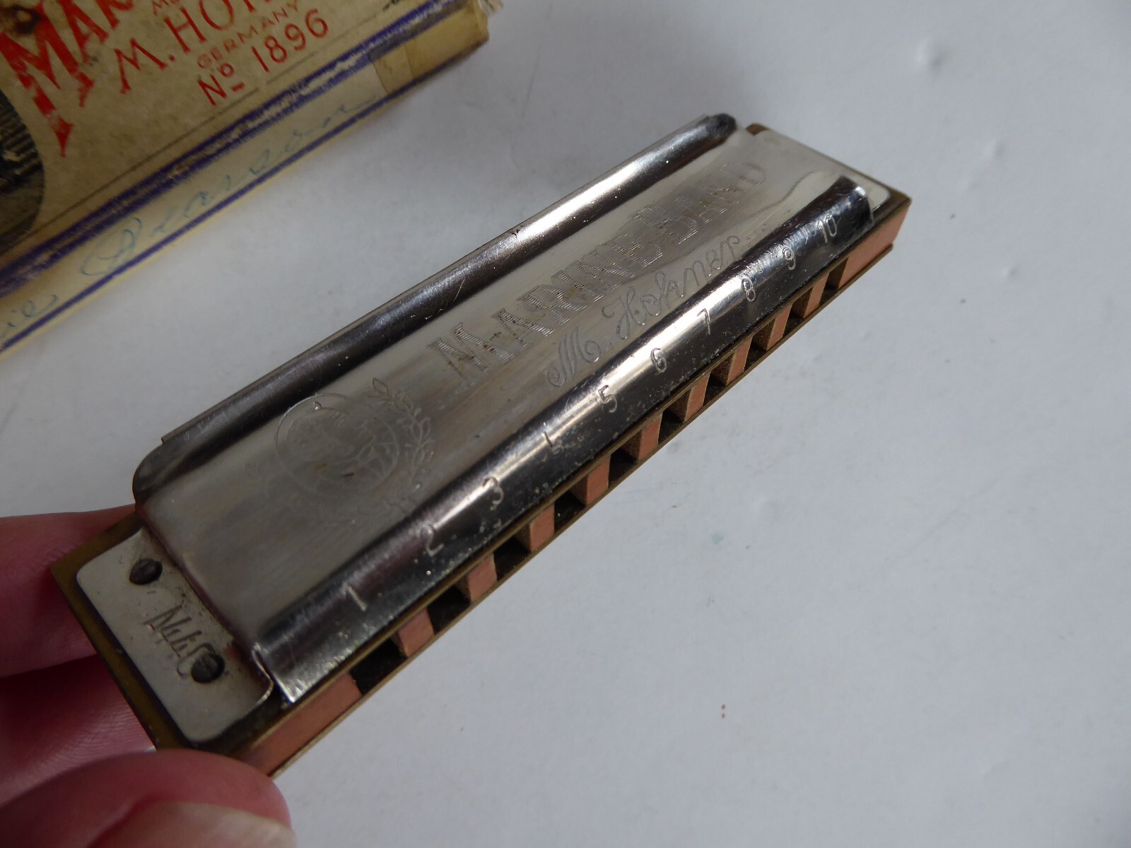 Vintage M. Hohner Germany Marine Band Harmonica No. 1896 Key of C Original Box