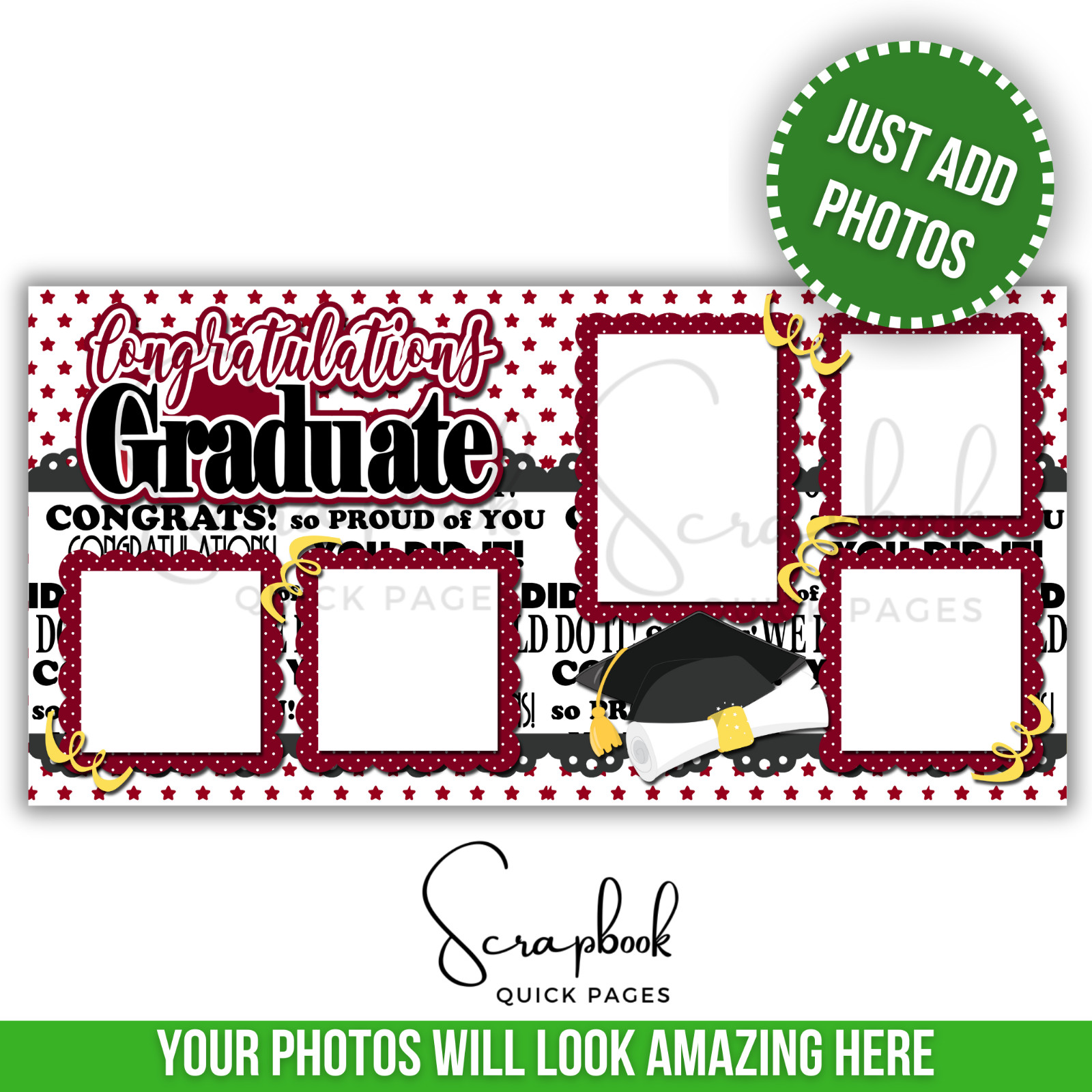 Maroon Burgundy Graduation Scrapbook PRINTED Premade Scrapbook Quick Pages 165