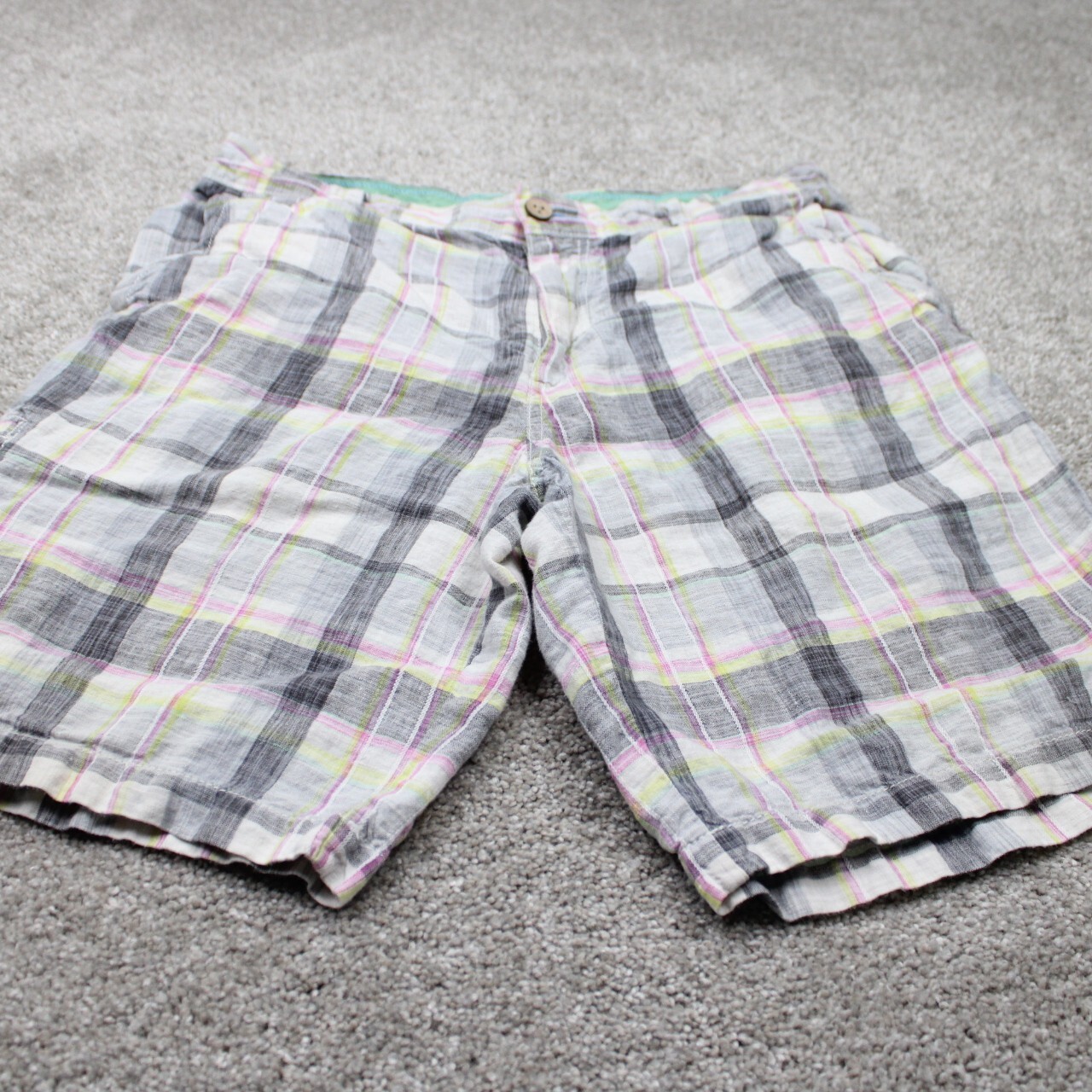 как выглядит Tommy Bahama Linen Shorts Men 32 White/Gray/Pink/Yellow Flat Front w/ 10" inseam фото