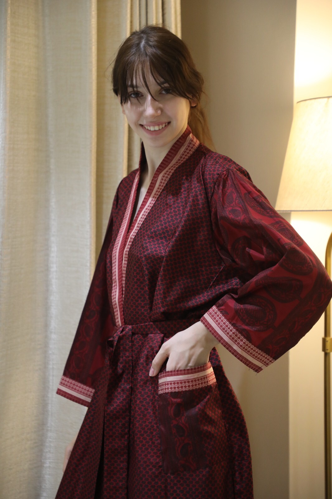 Pure Silk Red kimono Long Robe Gown Woman Silk Robe Kimono Gown PS KMO5055
