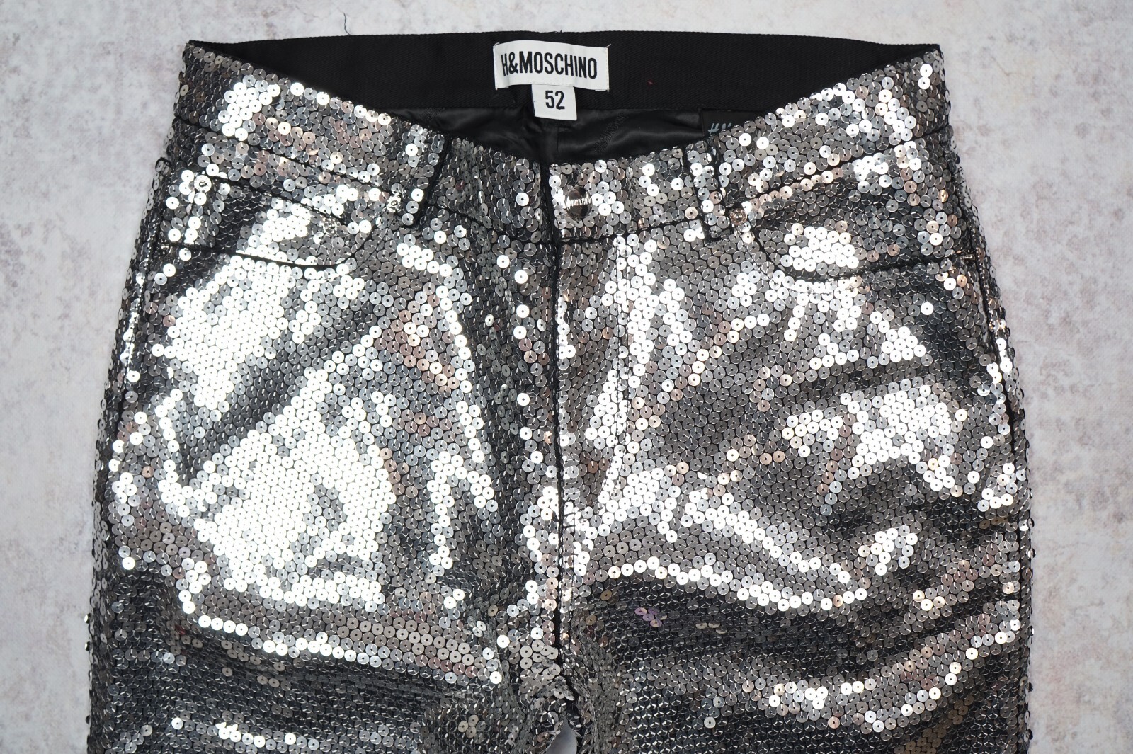 как выглядит MOSCHINO H M silver sequin pants disco fever jazzy shine New Year party 48 33R фото