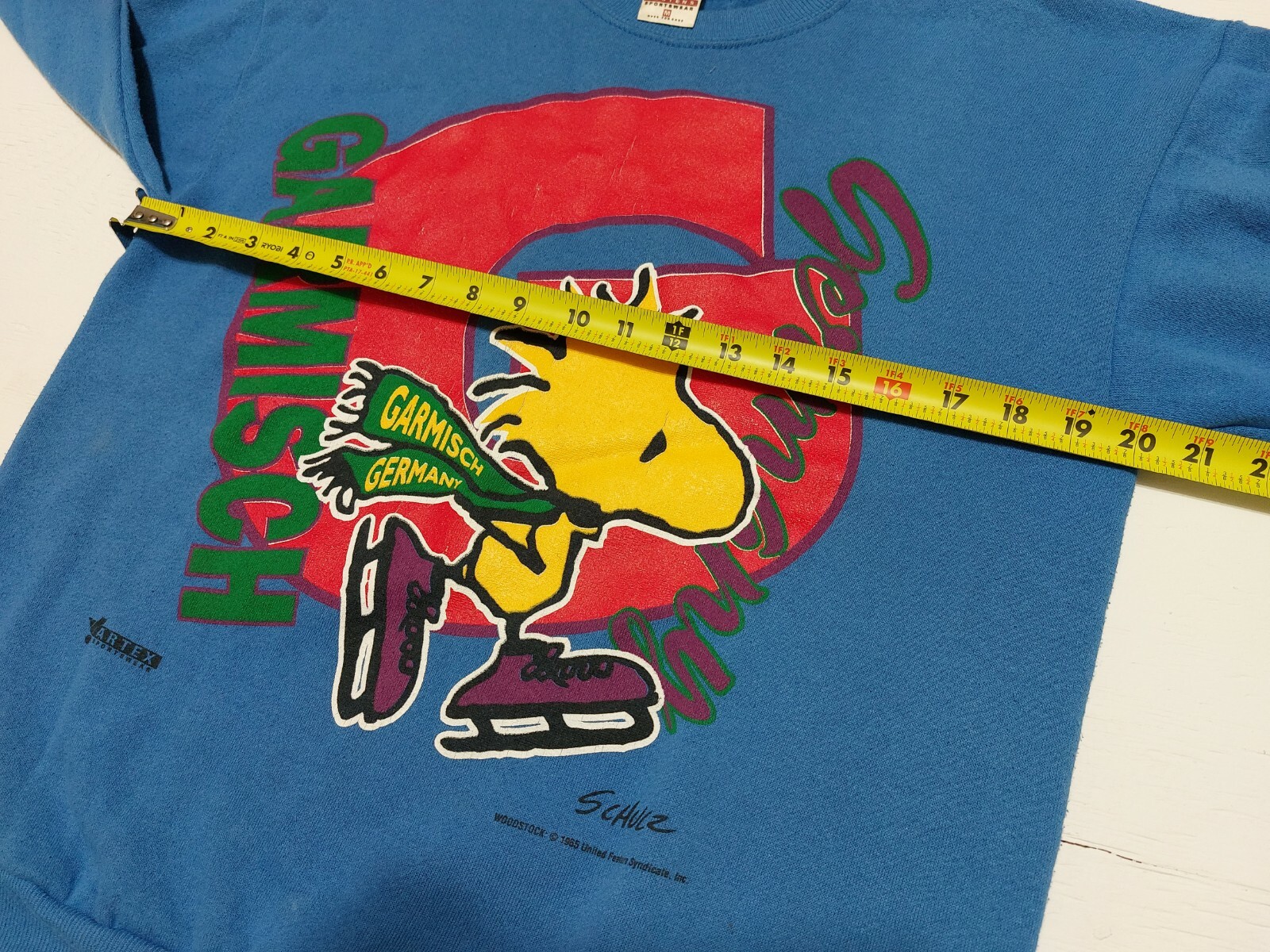 как выглядит Vintage 1960s Peanuts Snoopy Woodstock Jostens Artex Crewneck Garmisch Germany фото