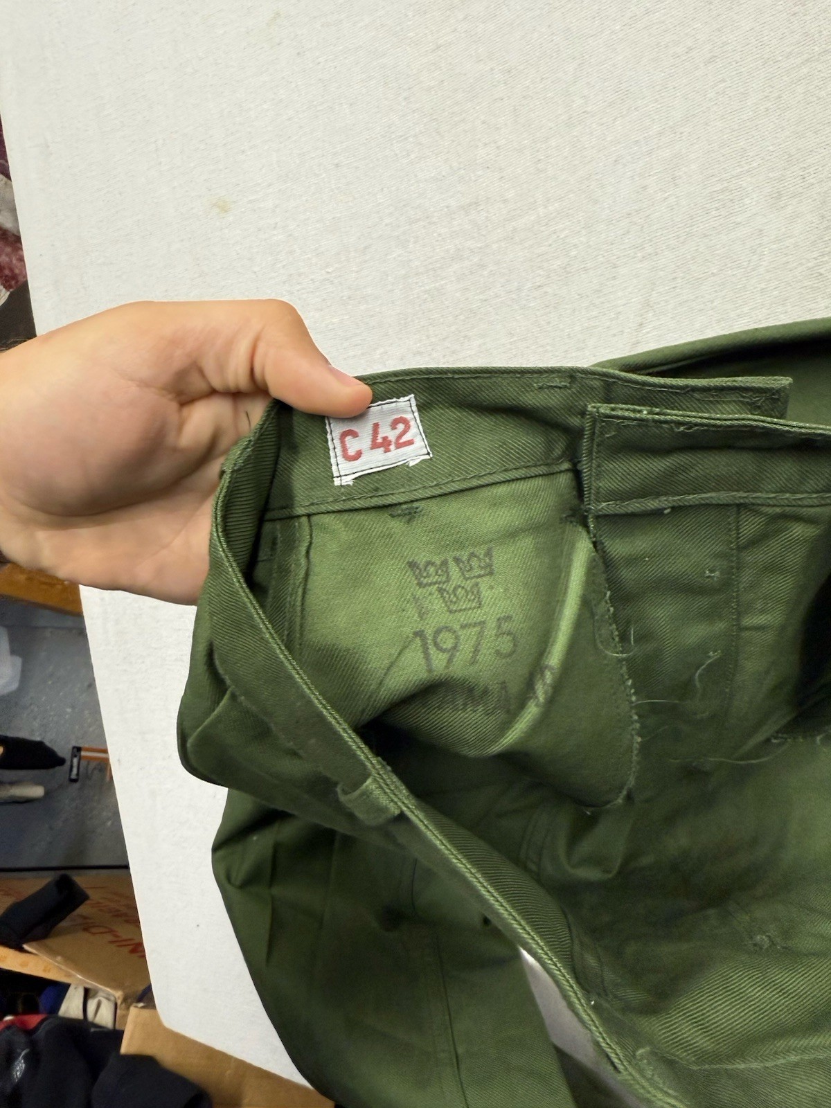как выглядит Vintage 1960s Swedish Military Olive Green Single Pocket Trousers 29 Waist фото