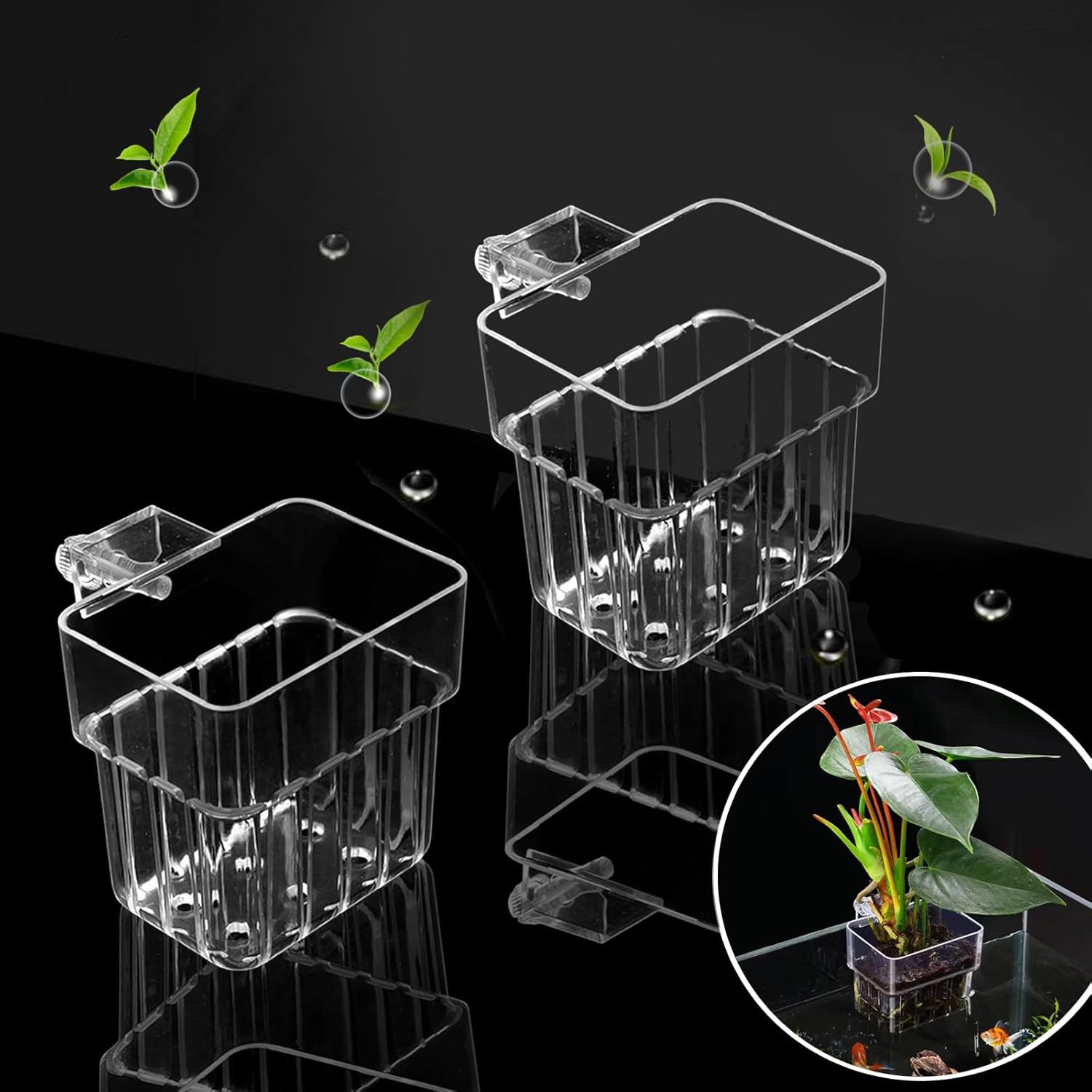 2 PCS Aquarium Plant Holder Top Hanging Fish Tank Plant Pot Aquarium Planter Cup