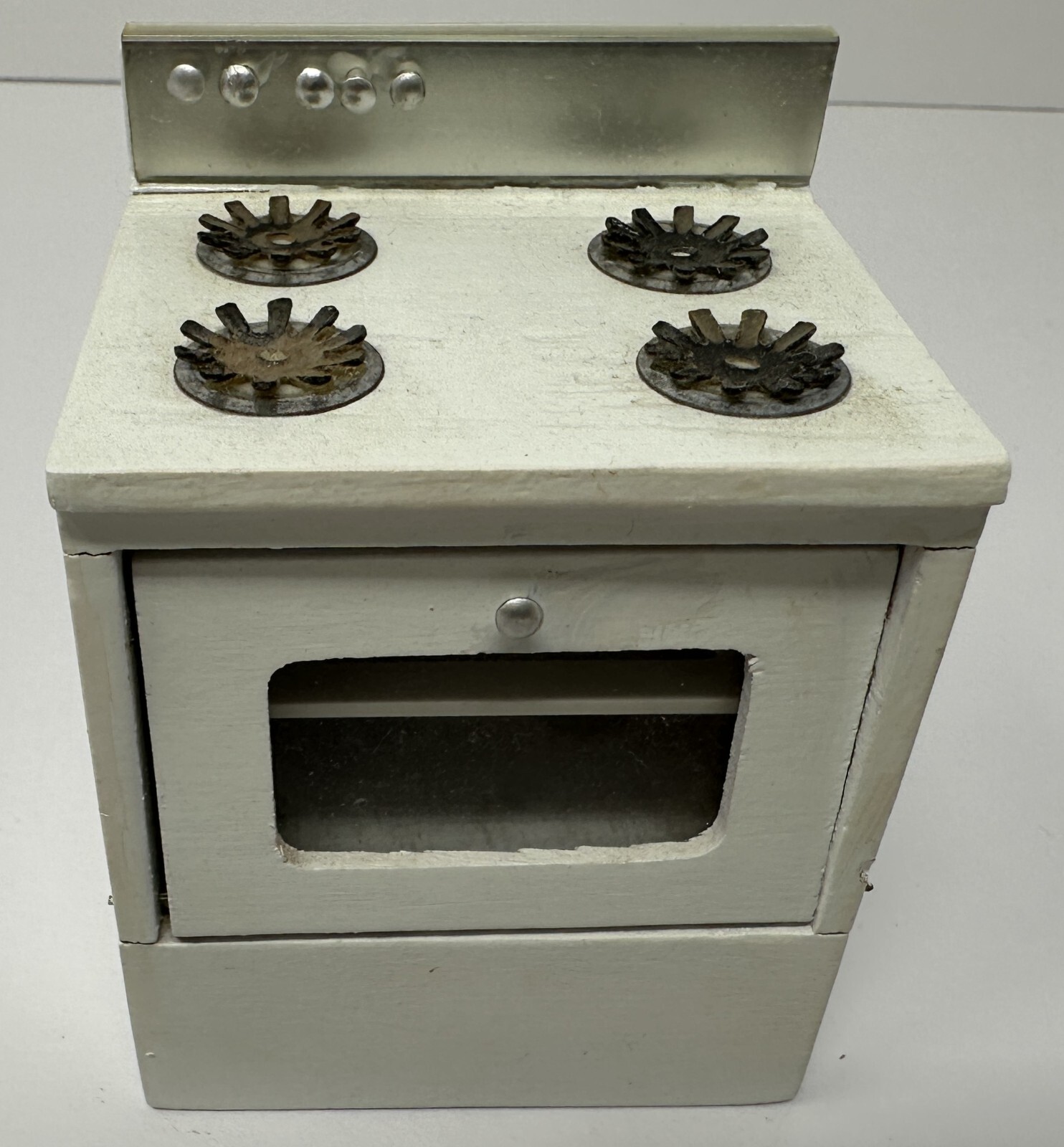 • Vintage Dollhouse Miniature White Wood Oven Silver Hardware