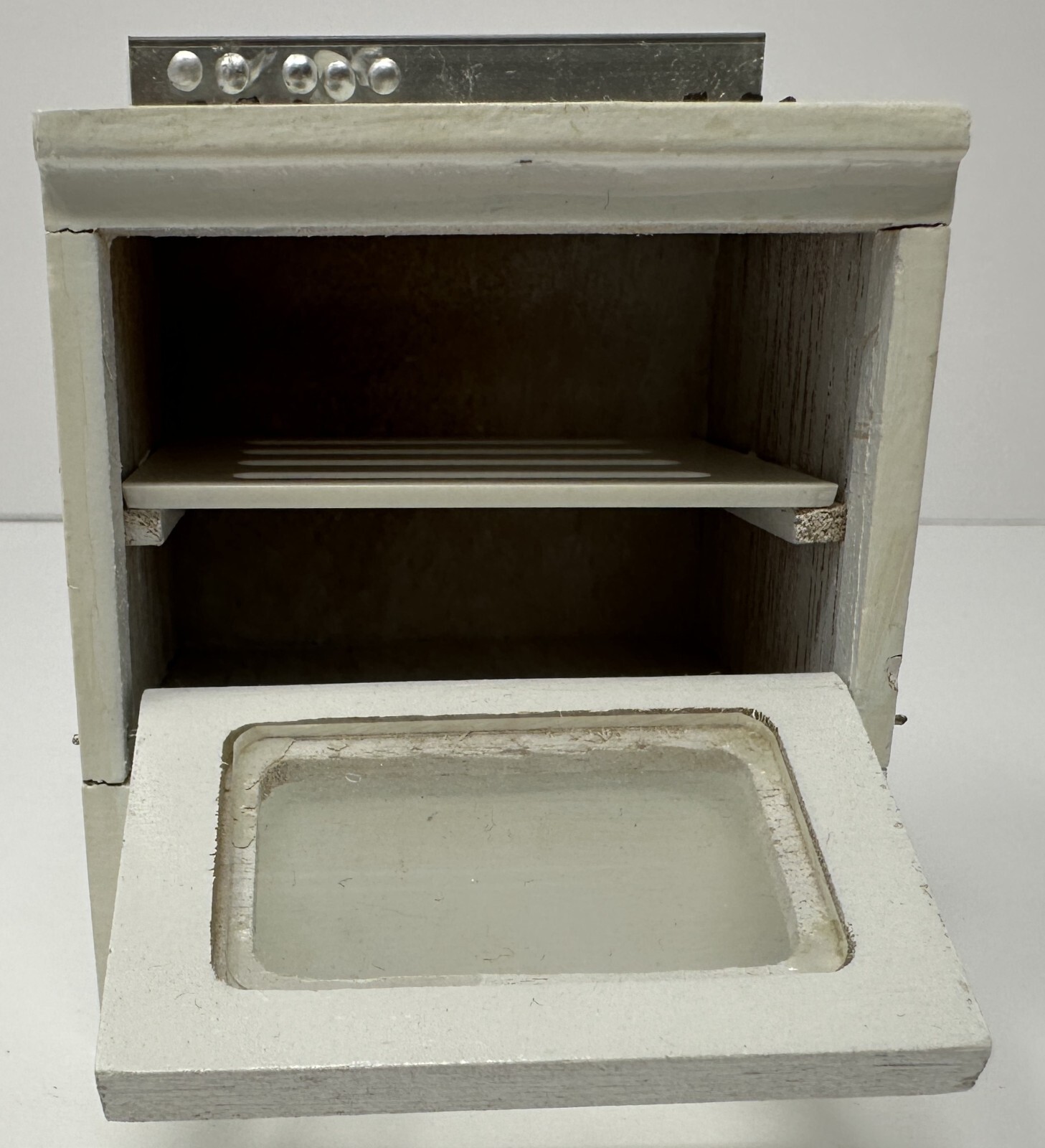 Vintage Dollhouse Miniature White Wood Oven Silver Hardware