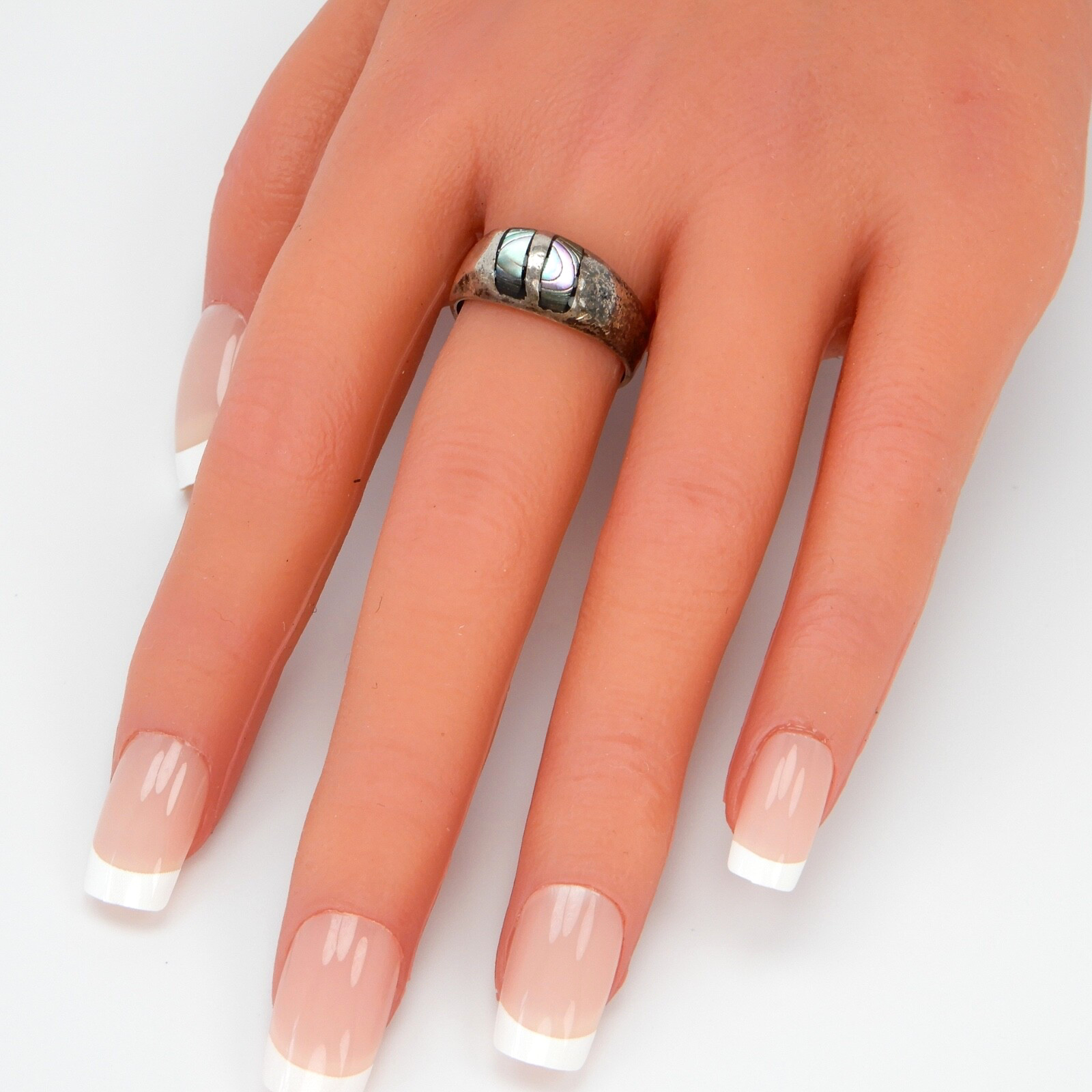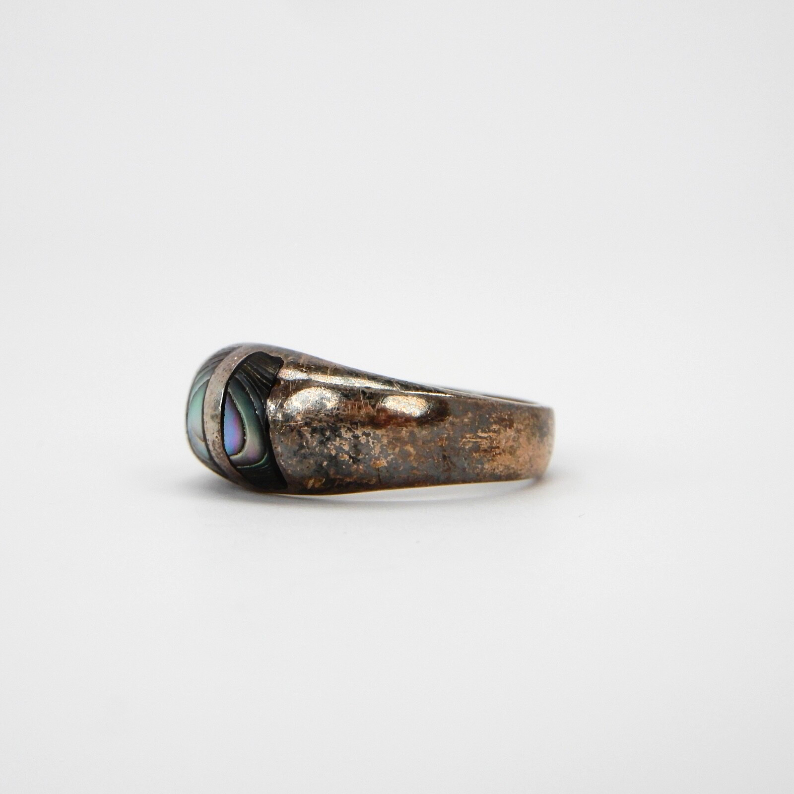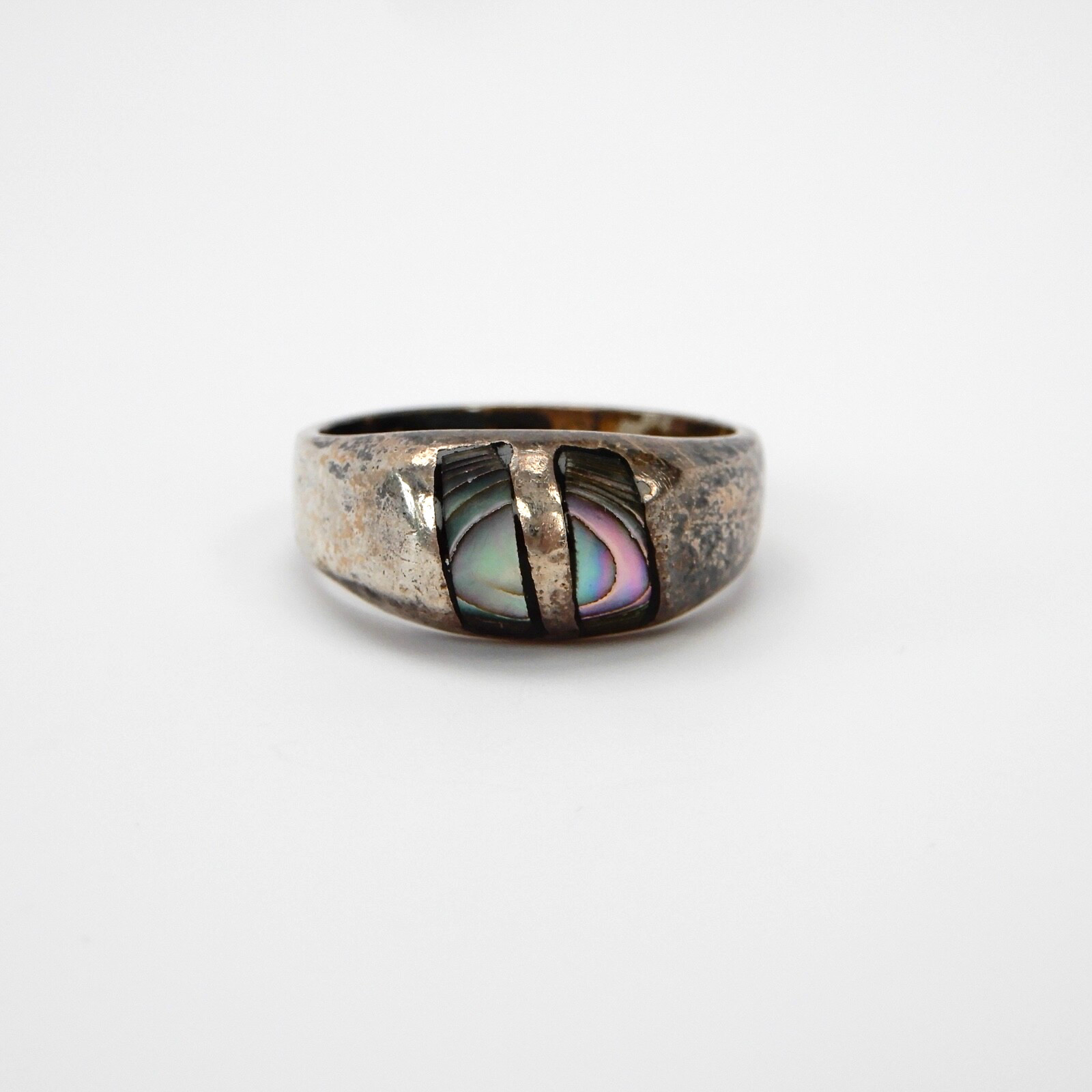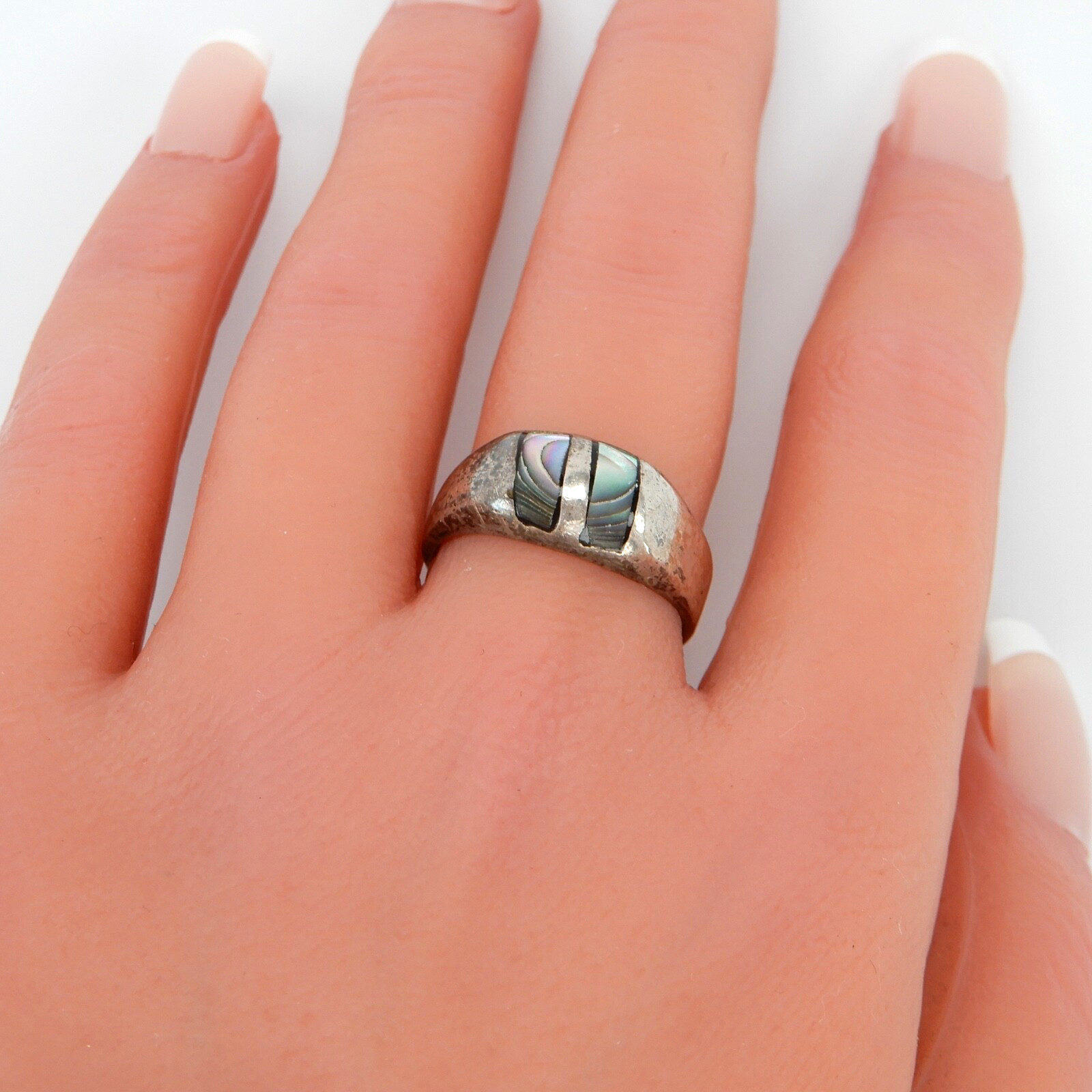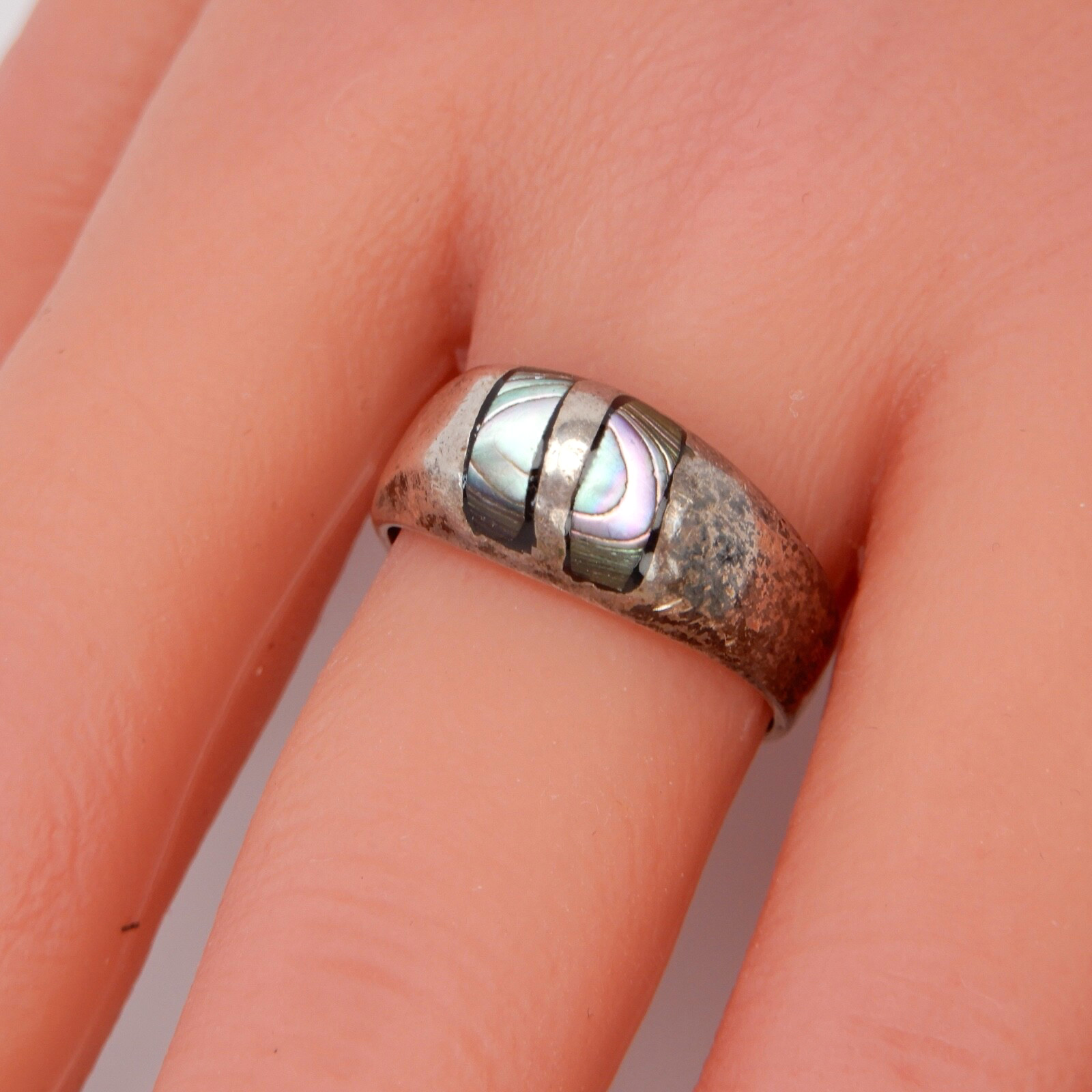 Sterling Silver Ring Abalone Inlay Size 7.75 Mexican 925 Vintage Mexico Jewelry
