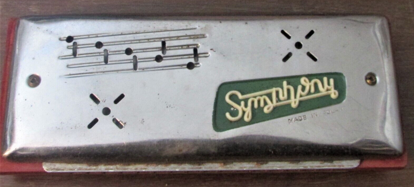Vtg Poland Harmonica SYMPHONY 1950 s Very nice With box bottom RARE Green white