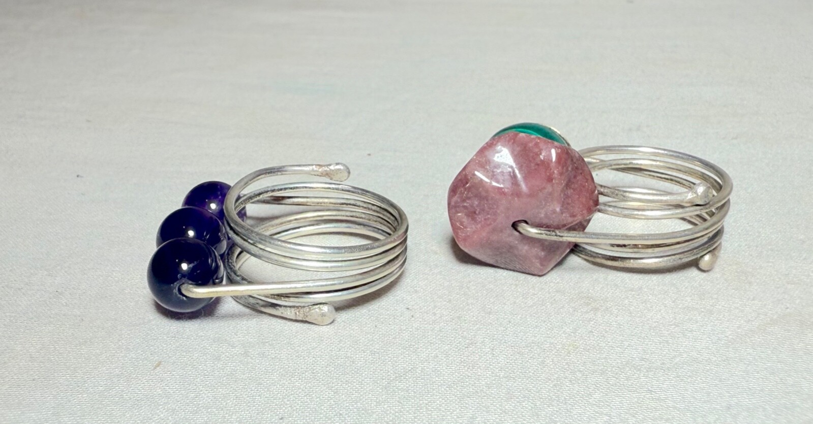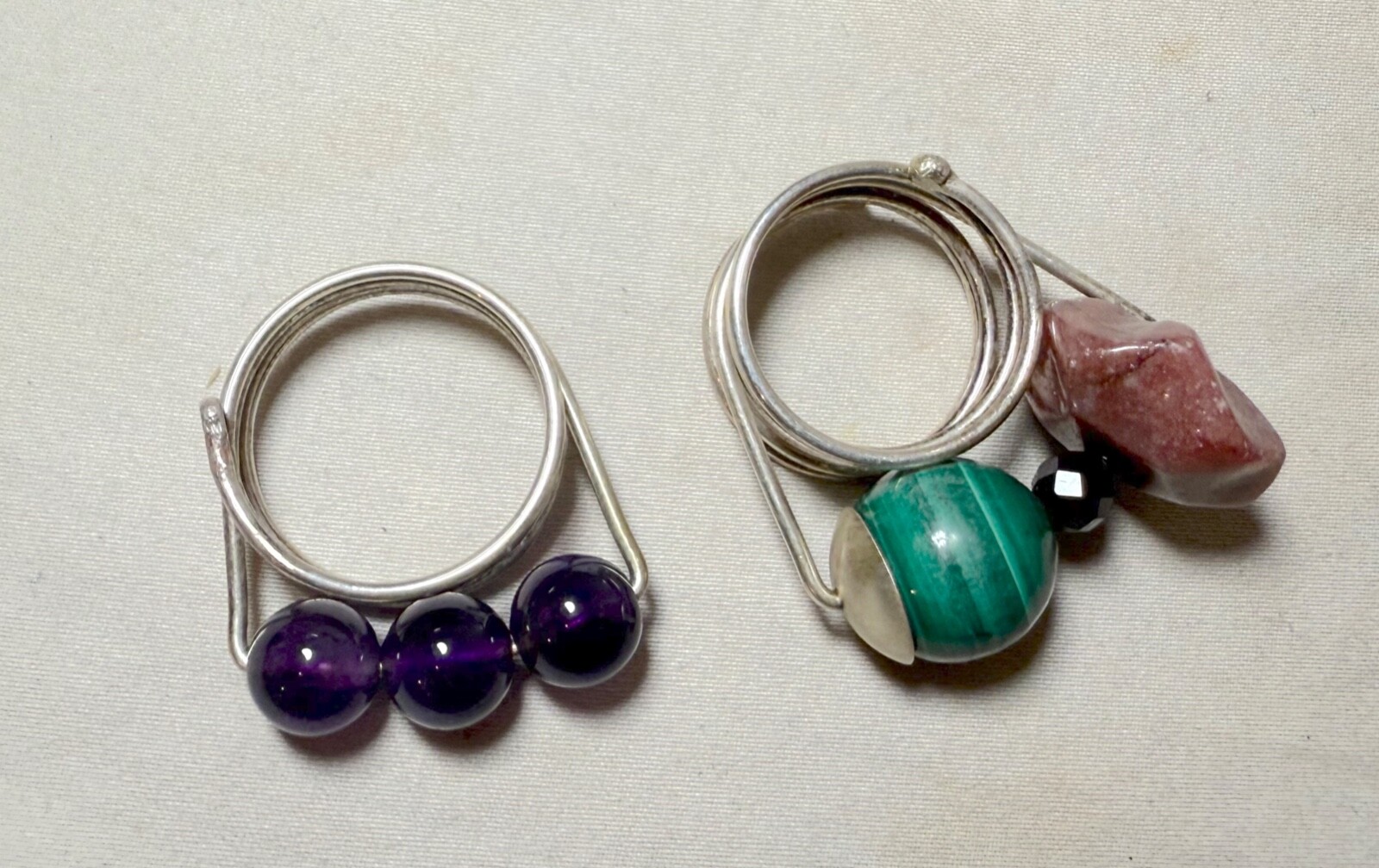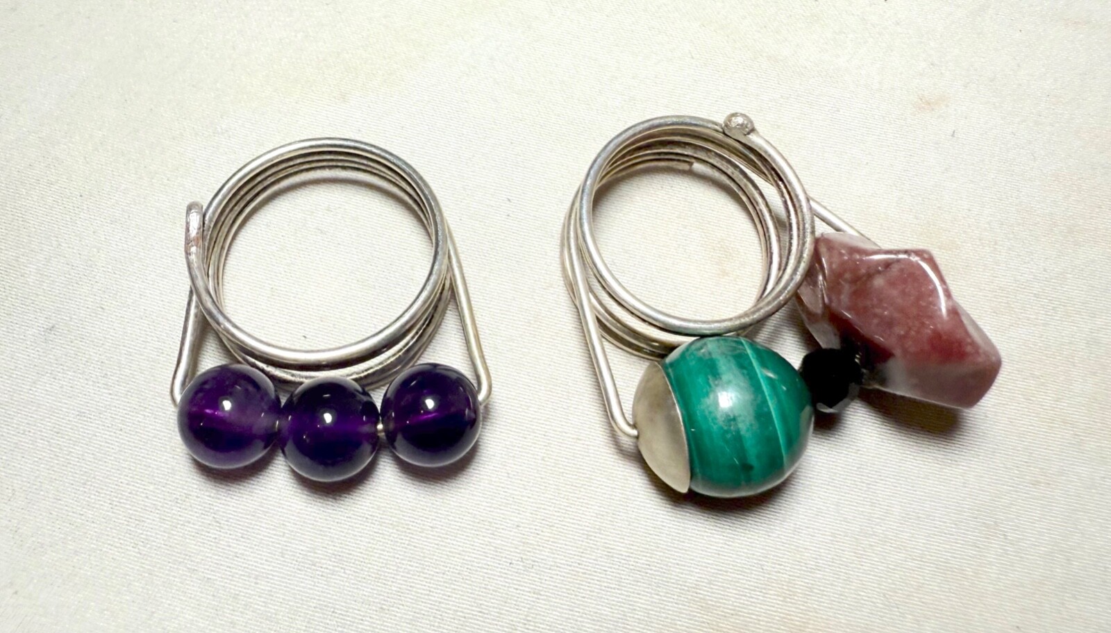 2 vintage L Connors artisan sterling silver amethyst malachite onyx modern rings