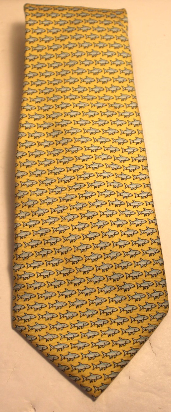 VINEYARD VINES MARTHA'S VINEYARDS YELLOW SHARK NOVELY 100 MEN'S SILK TIE