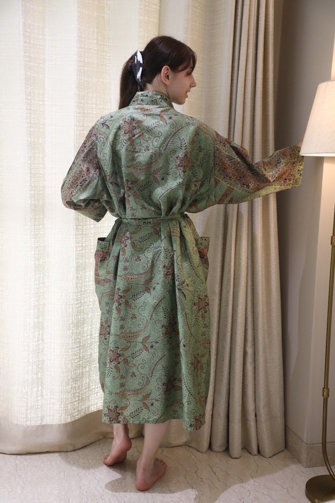 Pure Silk Green Black kimono Long Robe Gown Woman Silk Robe Kimono PS KMO5143