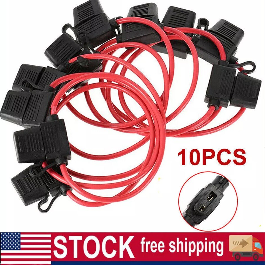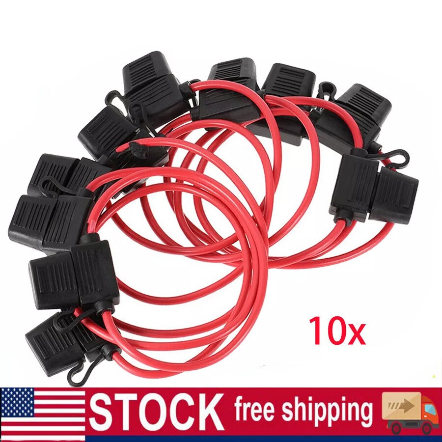 10 Pack 12 Gauge ATC/ATO In-line Blade Fuse Waterproof Fuse Holder 100 OFC Cop