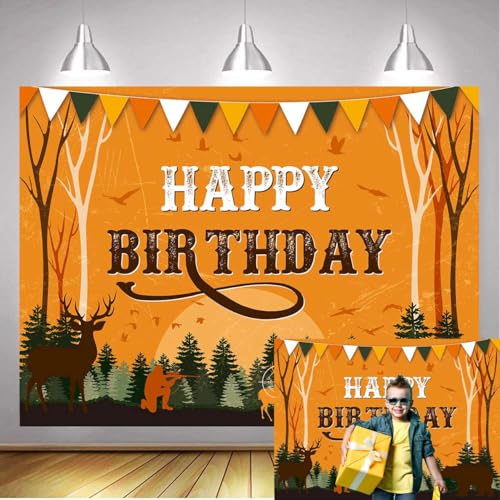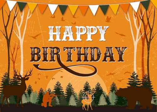 Hunting Theme Happy Birthday Backdrop Deer Camo Camping Hunting Birthday 7x5ft