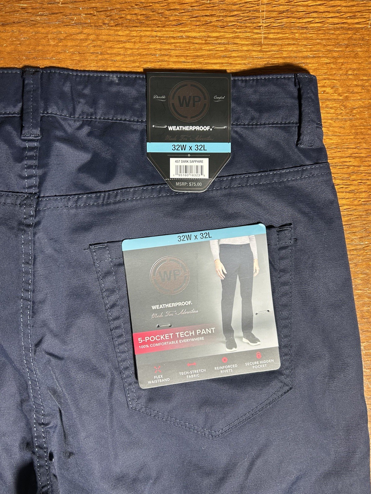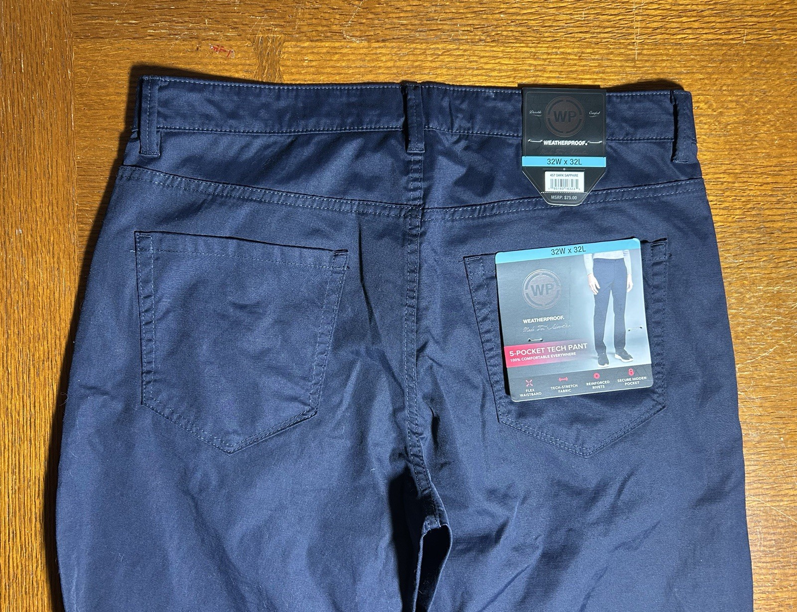 как выглядит New Mens 32Wx32L WEATHERPROOF Flex Waistband, 5 Pocket Tech Travel Pants Navy Bl фото