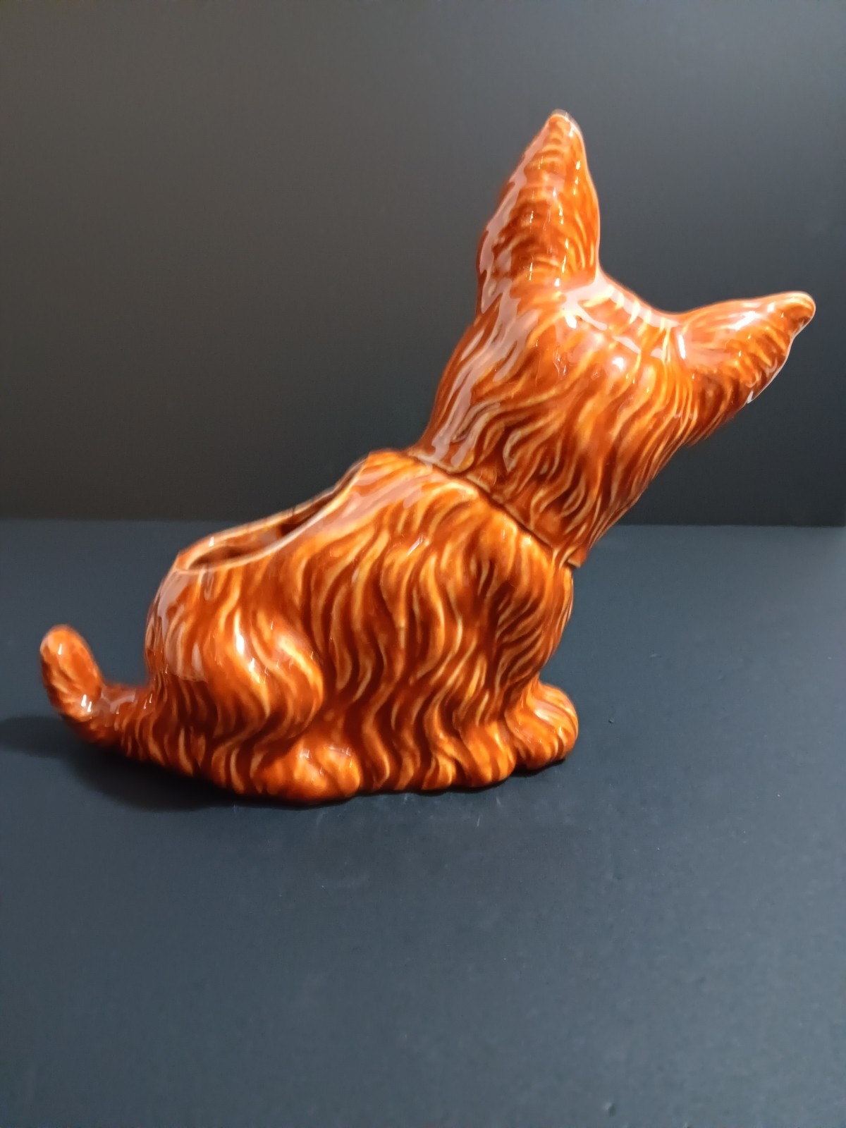 • Vintage Beige/Brown Ceramic SCOTTISH TERRIER DOG PLANTER 7.5"in x 8"in