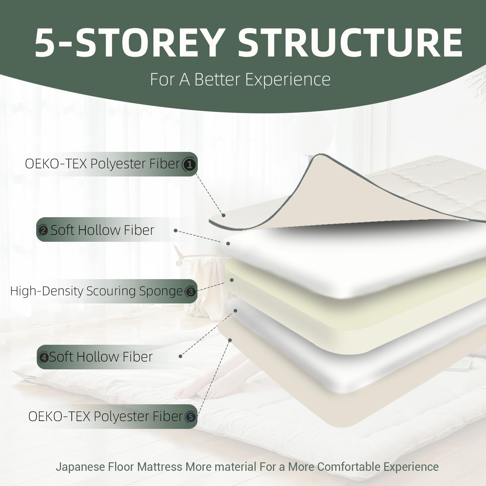 Japanese Floor Mattress Futon Mattress Twin Size 39x80 Foldable Tatami Matt...