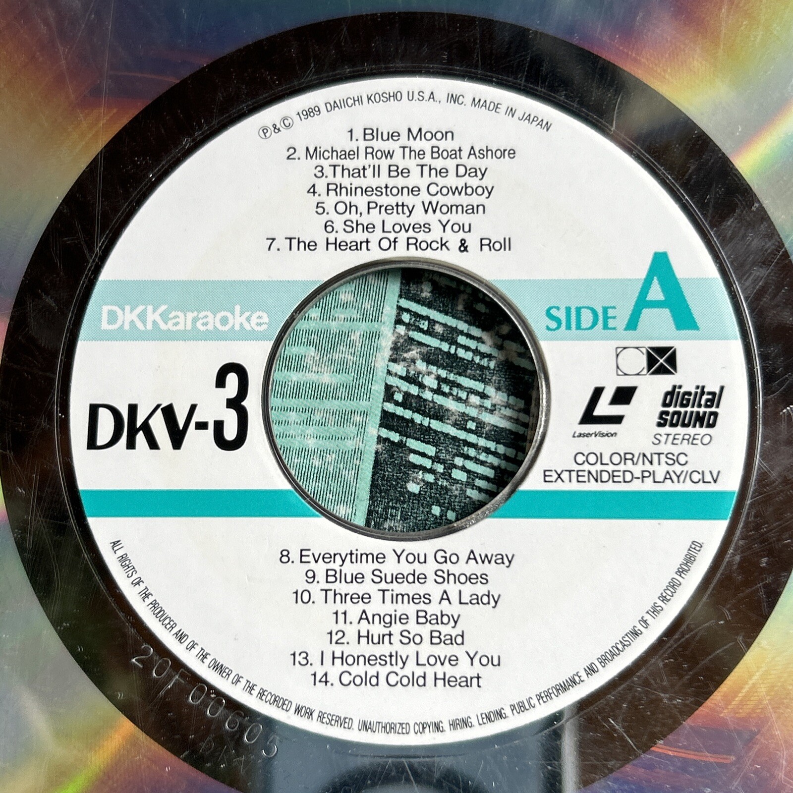 как выглядит DK KARAOKE 12" LASER DISk If86 DKV-3 When Doves Cry Blue Velvet Hard Days Night фото